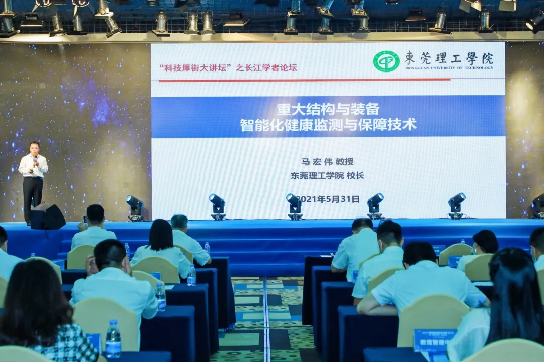 活动的最后一个压轴节目是“科技厚街大讲堂”之长江学者论坛,由我校校长马宏伟教授作了“重大结构与装备智能化健康监测与保障技术”专题报告,重点介绍了我校科研整体情况,以及我校“力学与可靠性”团队围绕结构、装备的运行状态监测与智能化健康保障技术,将物理建模、仿真与大数据人工智能技术融合,在重大构建筑物、数控装备等的智能化健康保障技术方面多年积累的科研成果。此次报告为现场观众带来了智能制造领域最前沿的理论与实践相结合知识盛宴,将活动推向另一波高潮。
