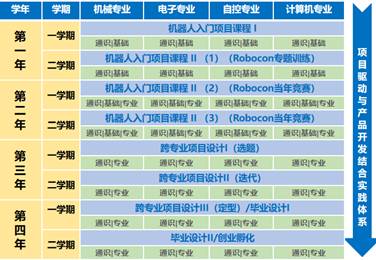 项目化课程引导学生以动手设计和制作应用为主,通过项目载体,实现交叉学科知识的融合应用。各专业须构建逐级提升的项目化课程体系,学生在项目实践过程中边学边做,提升团队协作能力、沟通表达能力、运用知识解决问题的综合能力逐步加强。