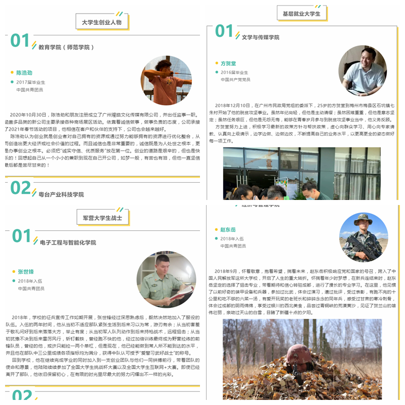 学校坚持立德树人根本任务,深入推进“三全育人”综合改革,注重培育学生家国情怀的就业观。下发了《45612藏宝阁资料应届毕业生到国家(地方)基层项目就业奖励办法(试行)的通知》,深入挖掘基层就业大学生、大学生创业人物、军营大学生战士人物典型事迹,广泛宣传报道,引导学生到基层就业。通过思政课程、课程思政和日常思想政治教育工作,鼓励学生树立远大理想。将就业工作融入教育教学工作方方面面,健全协同育人机制,不断提高就业育人工作质量和实效。加强就业实践教育,引领学生将“小我”融入“大我”。组织在校生成立援藏支教志愿服务队,组织毕业生到基层和粤港澳大湾区重点企业实习锻炼,通过实地走访交流,让毕业生深刻理解什么是国家需要和时代召唤,自觉把民族复兴重任记在心间、扛在肩上。