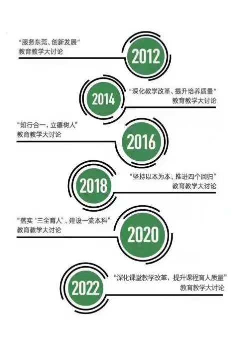 学校着力素养形成,2021年开始全面推动通识教育教学改革,创设通识教育课程体系,建设人才培养方案通识模块,35个课程单元100门通识教育必修、选修课程,创新开设专业限选课程模块,重点建设三大基础导引课、三大人文社科基础课程、三大交叉前沿课程。创立通识教育活动体系,开展通识教育大讲堂、求是读书计划、一模块一特色通识活动,至今共举行了11次通识教育大讲堂,28次求是读书沙龙,参加人数2万多人次,线上点赞20万多人次,举办通识教育首届“莞工说”新锐语言竞技秀暨主题征文演讲比赛。构建通识教育宣传体系,开辟“校长晨荐.古典诗歌”专栏。注重研讨我校通识教育改革亮点,《面向新兴领域的新工科人才培养通识教育教材体系研究》项目获教育部高教司立项。