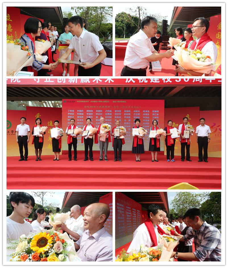 “30年,您风雨兼程,无私奉献;30年,您激情不减,爱校如家……”学校30年的蓬勃发展,离不开一代代莞工人在平凡岗位上的开拓奋进、无私奉献。在建校30周年致敬礼上,校党委书记成洪波为校龄满30年教职工代表颁授校龄满30年证书,校党委副书记、校长马宏伟为他们颁赠纪念礼物;学生与青年教职工分别向他们送上鲜花与红围巾。