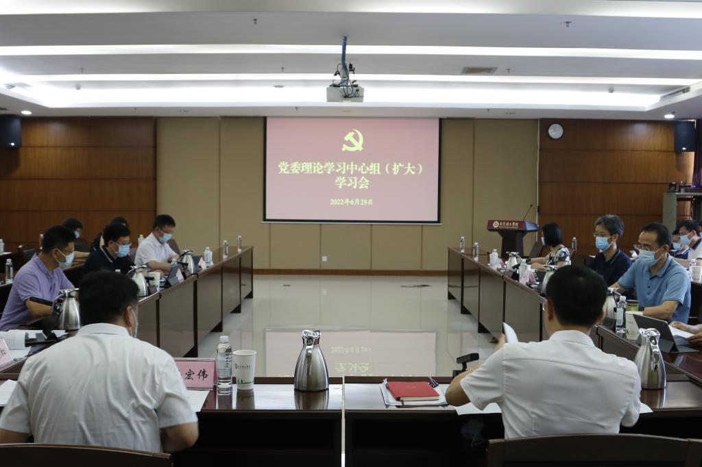 6月29日,学校党委理论学习中心组(扩大)召开意识形态专题学习会。校党委书记成洪波领学了习近平总书记关于意识形态工作的重要论述,党委委员、副校长杨敏林结合《中国共产党宣传工作简史》的学习,重点论述了意识形态工作是党的一项极端重要的工作的重要意义,分享了校园安全工作的总体情况和具体开展思路。党委委员、党委宣传部部长邹琼以《宣传工作百年历史经验的启示》为题,分享了做好新时期高校宣传工作的认识体会,提出筑牢高校意识形态安全防线的相关思路。
