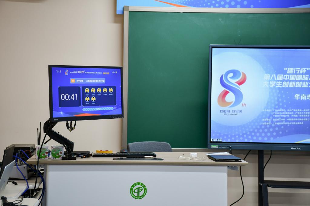 6栋教学楼是本次比赛的主要区域,楼内用于比赛的相关教室均已布置完毕。项目评审端搭建20个路演室;每个路演室配备6台电脑、7台iPad、10名志愿者。为避免突发情况,我校还设置了1个教室为备用路演室,全力为大赛保驾护航。