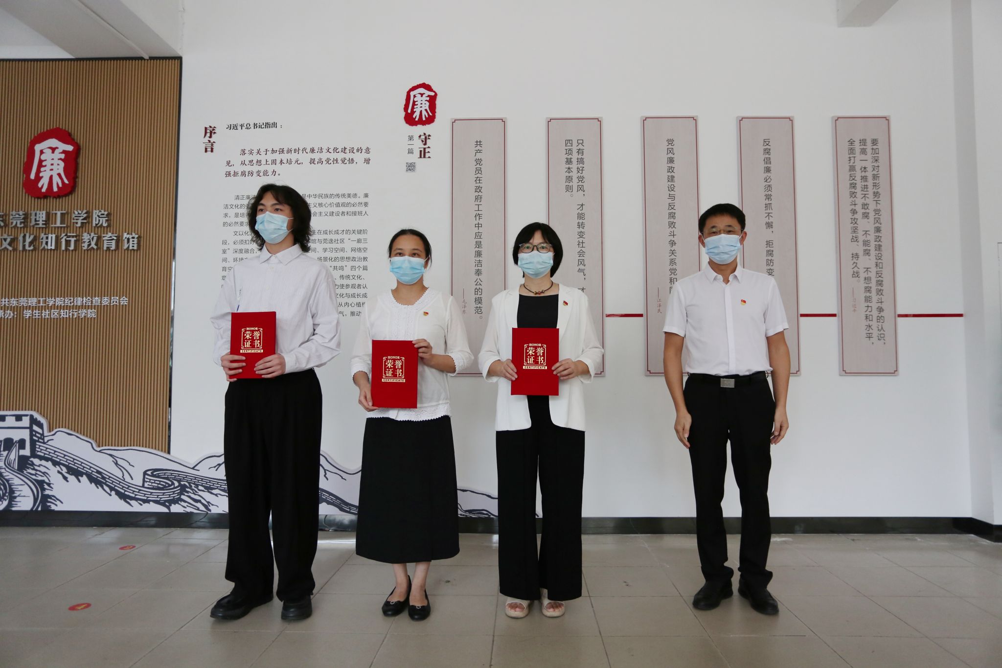 纪检监察室、党委宣传部、党委教师工作部、党委学研工部、团委、知行学院等相关部门负责人;学校纪委委员、二级党组织纪检委员、学校廉洁教育讲师团成员、纪检监察员;清廉文化作品征集活动获奖师生代表参加本次揭牌仪式并进行了参观学习和交流。