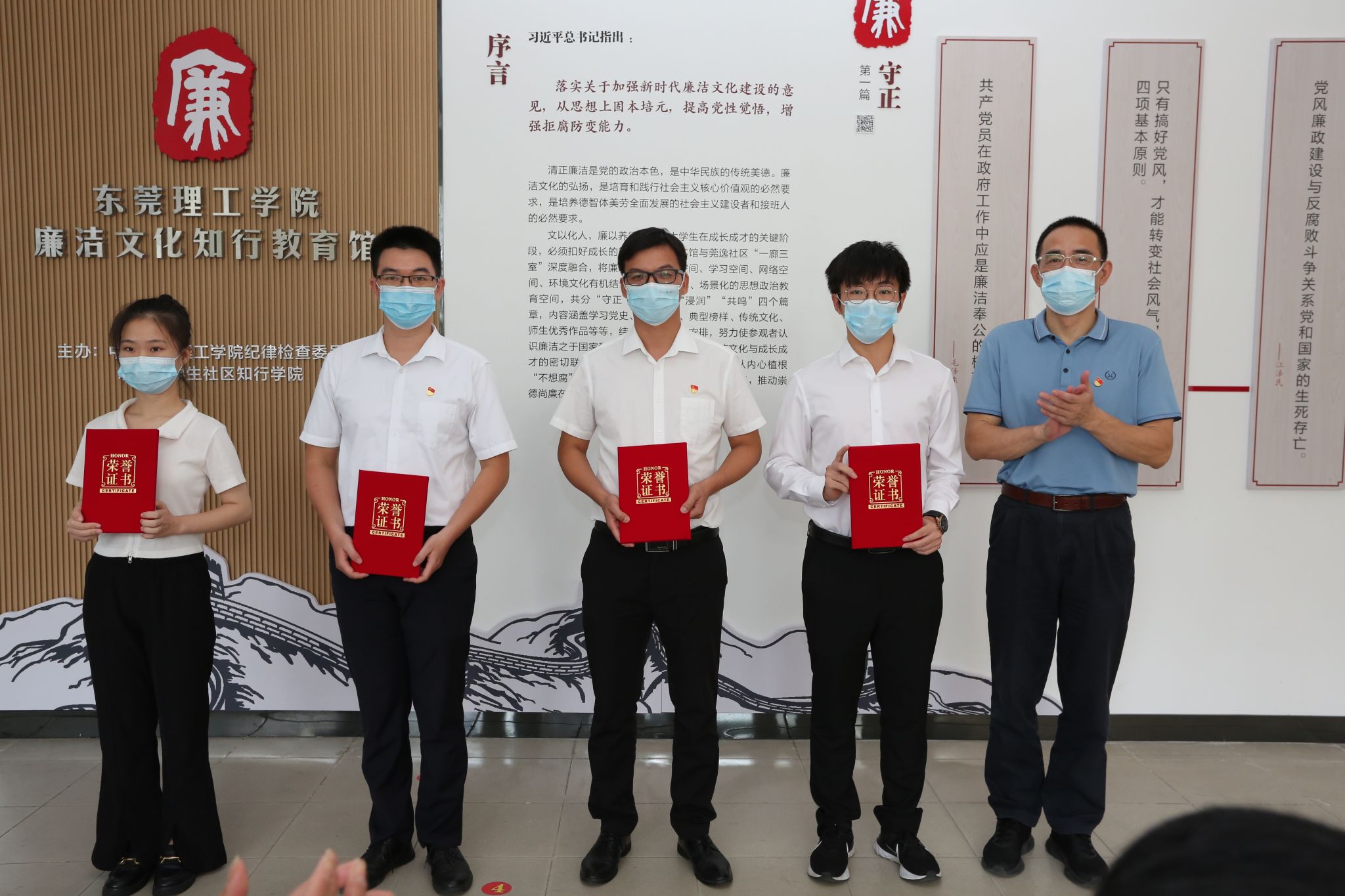 廉洁文化知行教育馆的建立是我校贯彻落实《关于加强新时代廉洁文化建设的意见》的重要举措,也是我校今年纪律教育学习月活动的重要安排。廉洁文化知行教育馆与莞逸社区“一廊三室”深度融合,将廉洁文化与生活空间、学习空间、网络空间、环境文化有机结合,营造生活化、场景化的思想政治教育空间。