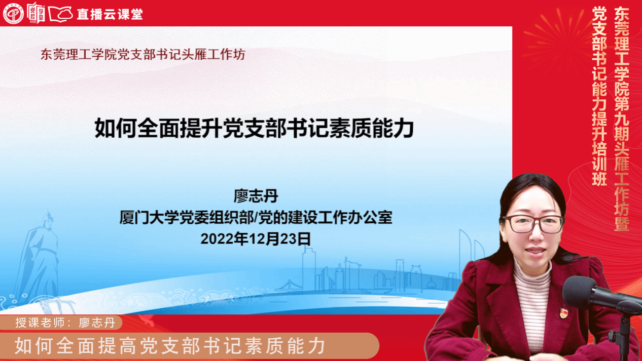 12月23日,第九期党支部书记头雁工作坊暨能力提升培训班在学术会议中心306主会场及线上同步举办,组织部、党校办公室及全体基层党支部书记、支部委员及党务干部逾千人次,通过线上线下收看直播。培训活动由组织部副部长陈宝华主持。