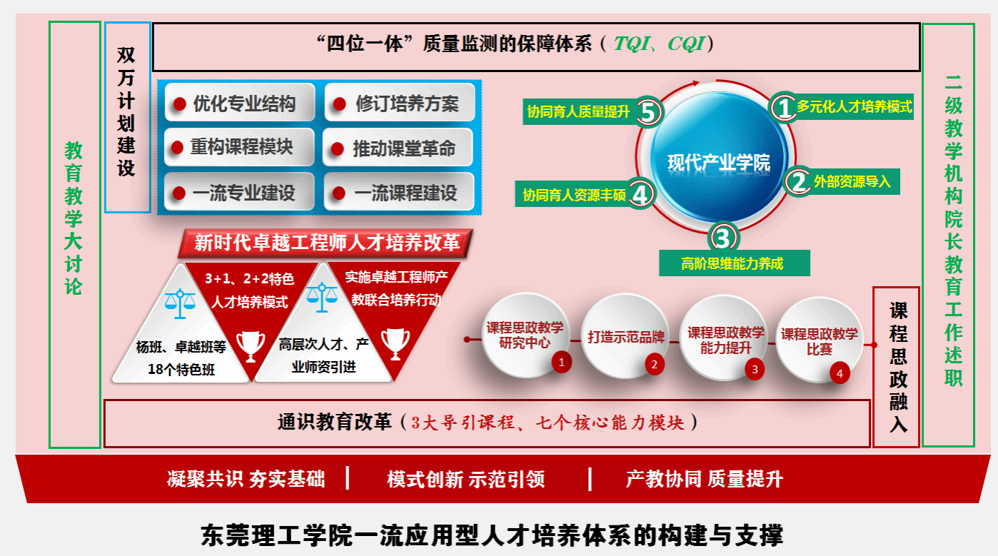坚持产教融合。主动对接粤港澳大湾区,对接国家大科学装置,对接现代产业体系,深化科教融合、产教融合,挖掘和推广针对新技术、新模式、新业态的校企合作“莞工样本”。持续推进新时代卓越工程师产教联合培养行动,构建产教协同育人长效机制,全面提高人才培养质量,探索形成地方高校卓越工程师培养的“莞工经验”。