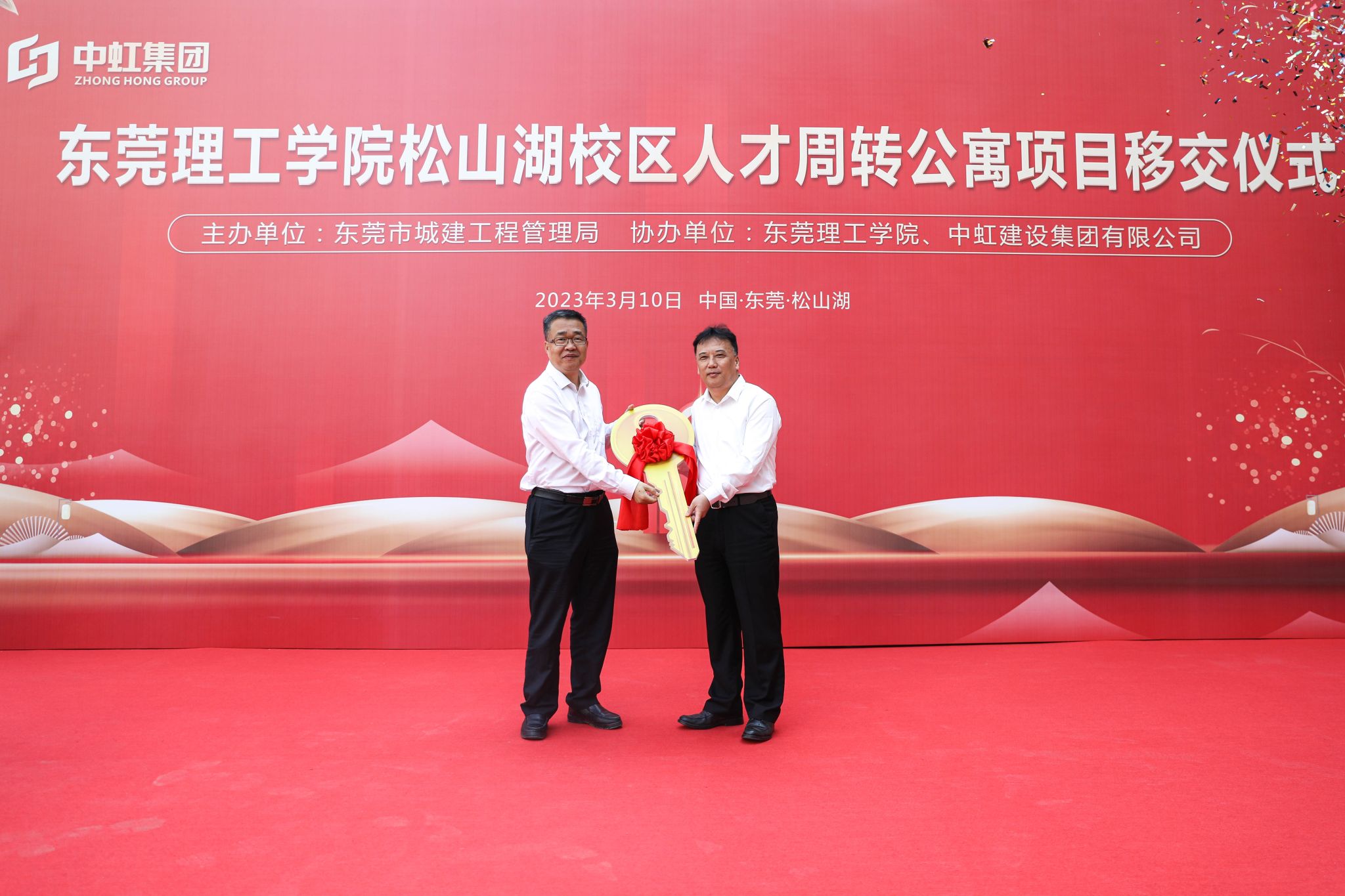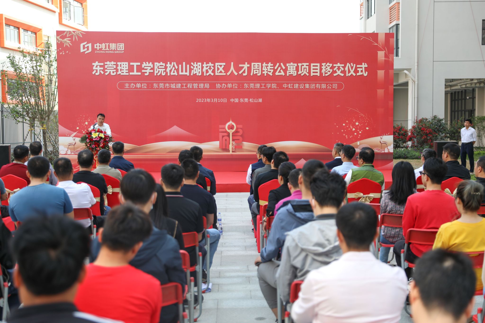 学校校长马宏伟、中虹建设集团董事长黎磊落、各参建单位及学校相关部门负责人、学校青年教师代表参加了移交仪式。