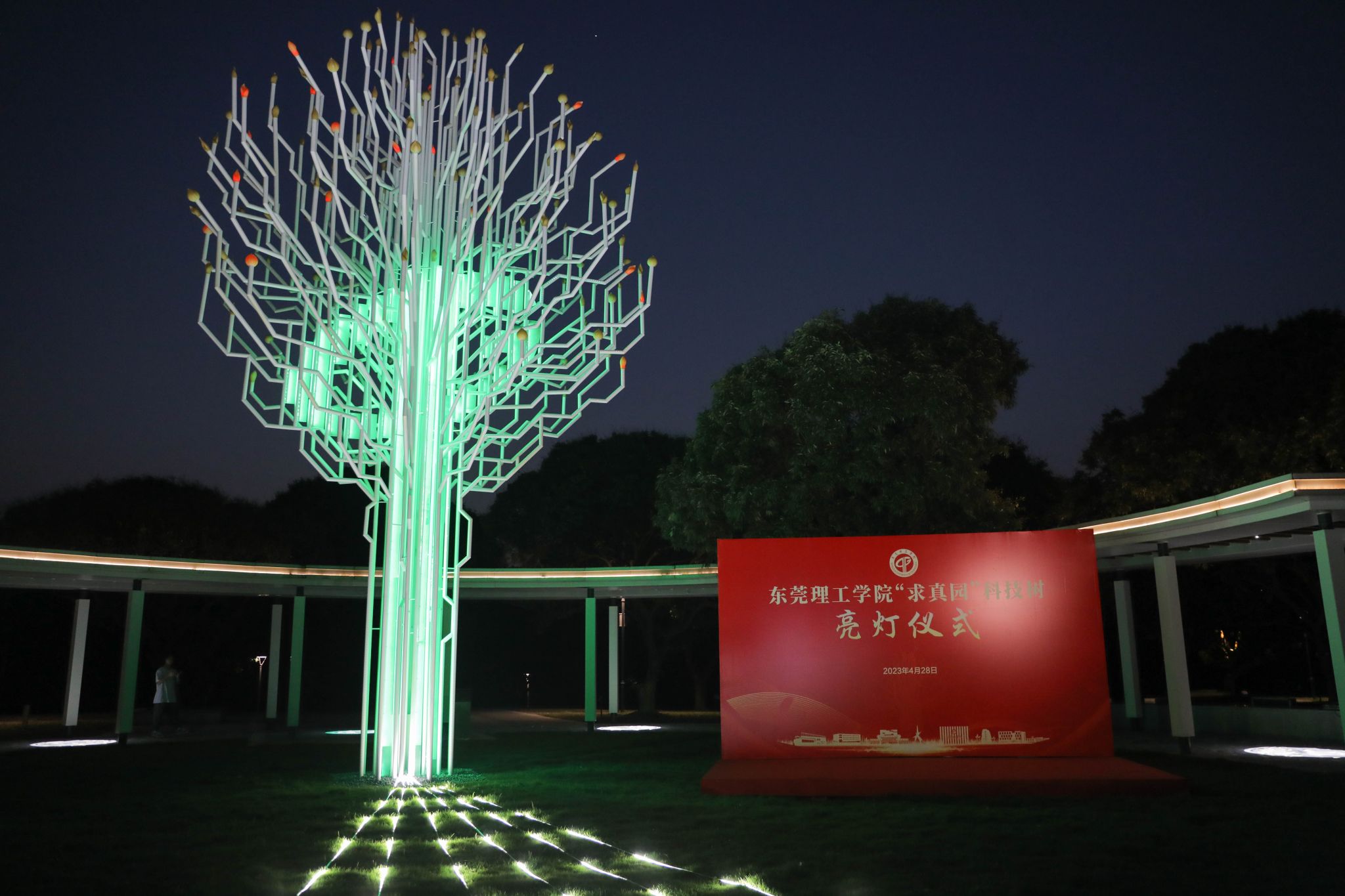 4月28日,45612藏宝阁资料求真园文化广场在莞工31周年校庆之际正式启用,当晚求真园内的科技树举行亮灯仪式,点亮莞工夜空。