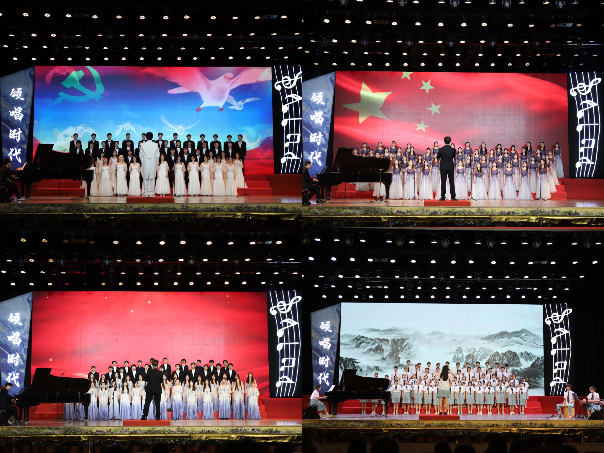 在大赛中,各学院合唱团分别演唱了《光荣与梦想》《不忘初心》《红旗飘飘》《如愿》《我和我的祖国》《红河谷》《有我》等三十首歌曲。他们用大气磅礴的歌声和旋律歌颂了中华民族自强不息的伟大精神、阔步向前的豪迈气概,唱出了新时代青年对党、对祖国、对社会主义的浓厚深情与热情讴歌。参赛队伍稳健大方的台风和精彩的演唱赢得了评委和同学们的阵阵掌声。