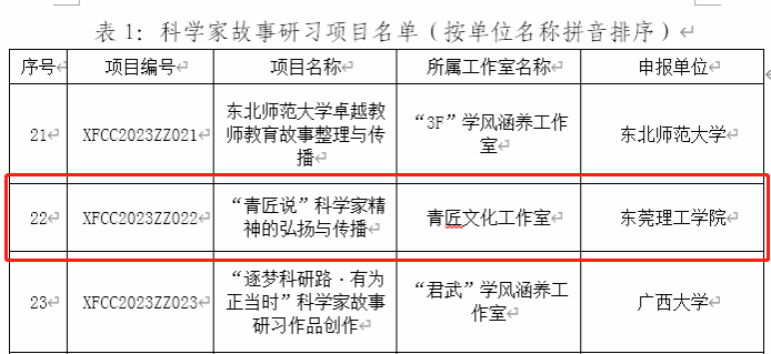 6月12日,中国科协发布了2023年学风传承行动立项名单,我校机械工程学院黄楚刁老师牵头申报的《“青匠说”科学家精神的弘扬与传播》获批立项为科学家故事研习项目,“青匠文化工作室”获批2023年学风涵养工作室。这是我校首次获批学风传承行动资助项目,该类项目今年全国仅立项95项。