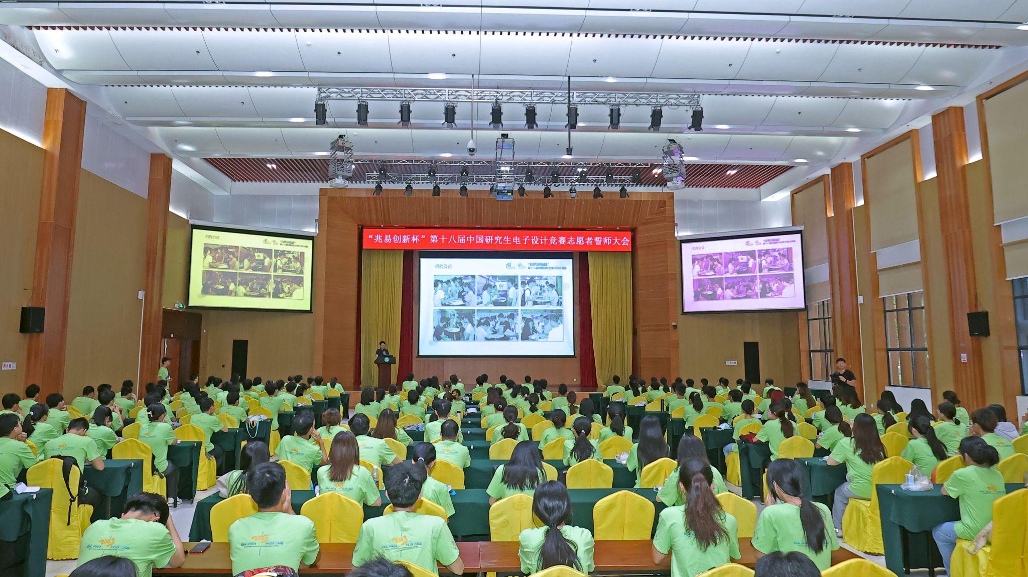 8月9日上午8点,“兆易创新杯”第十八届中国研究生电子设计竞赛志愿者誓师大会在学术会议中心多功能厅举行。会上,中国电子学会研电赛组委会副秘书长刘霆轩作动员讲话,并介绍了大赛背景、时间节点以及竞赛形式等,对赛事安排进行通识培训。