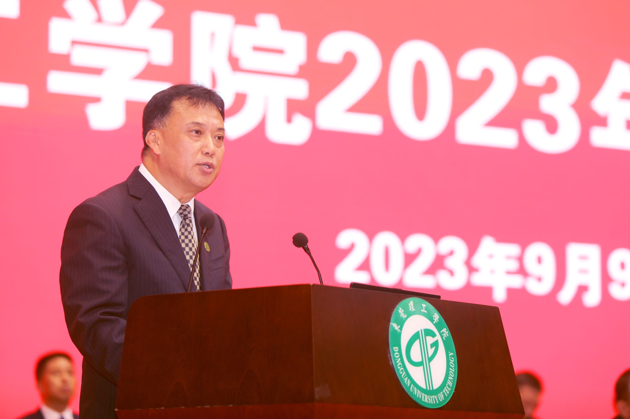 马宏伟寄语2023级新生,坚定不移为祖国为人民接续奋斗、为新时代新征程忠勇奉献,在莞工这片沃土上,撒下勤勉笃行的种子,沸腾勇攀高峰的激情,以青春之我、奋斗之我,跑出当代青年的最好成绩。