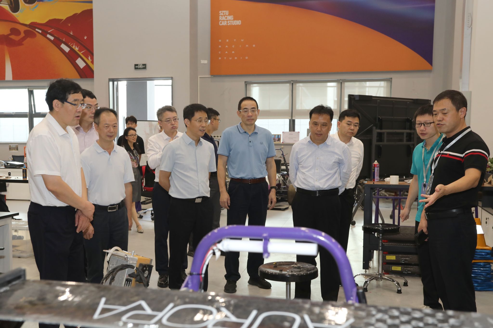 当天上午,校党委书记成洪波、校长马宏伟率队来到深圳技术大学。座谈会上,深圳技术大学校长阮双琛介绍了学校的建校历程、办学理念,重点介绍了深圳技术大学积极承接深圳“双区建设”强大发展动能和开放势能,着力培养具有国际视野、工匠精神和创新创业能力的高水平工程师、设计师、精算师等高素质应用型人才的具体做法。成洪波、马宏伟表示,深圳技术大学构建国际化环境、推进产教融合培养应用型人才的做法值得借鉴。希望两校发挥各自优势,在国际合作、技术研究等方面达成进一步的合作。会后,调研组一行参观了深圳技术大学校区,重点考察了材料微纳制造技术中心与微电子教学实验室、创意设计学院展厅、城市交通与物流学院赛车工作室。