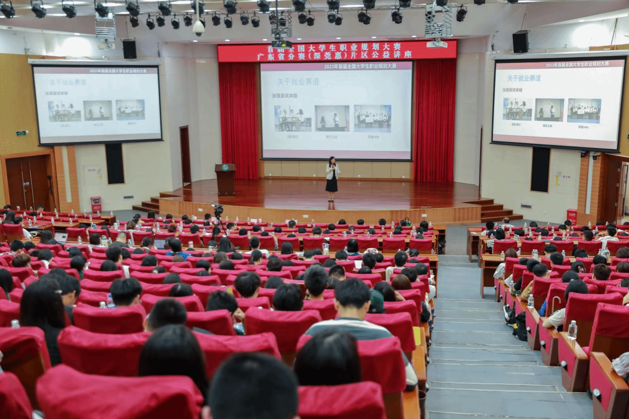 当天下午,首届全国大学生职业规划大赛广东省分赛(深莞惠)片区公益讲座走进莞工。在我校学术会议中心阶梯报告厅,来自深圳、东莞、惠州的各个高校教师代表、学生代表共500人参加讲座。广东工业大学心理健康教育中心的范梦老师以“职业规划大赛的变与不变”为主题开讲,为现场师生详细地介绍了本次职业规划大赛的具体情况,并带来了备赛建议、参赛策略、就业技巧等干货内容。