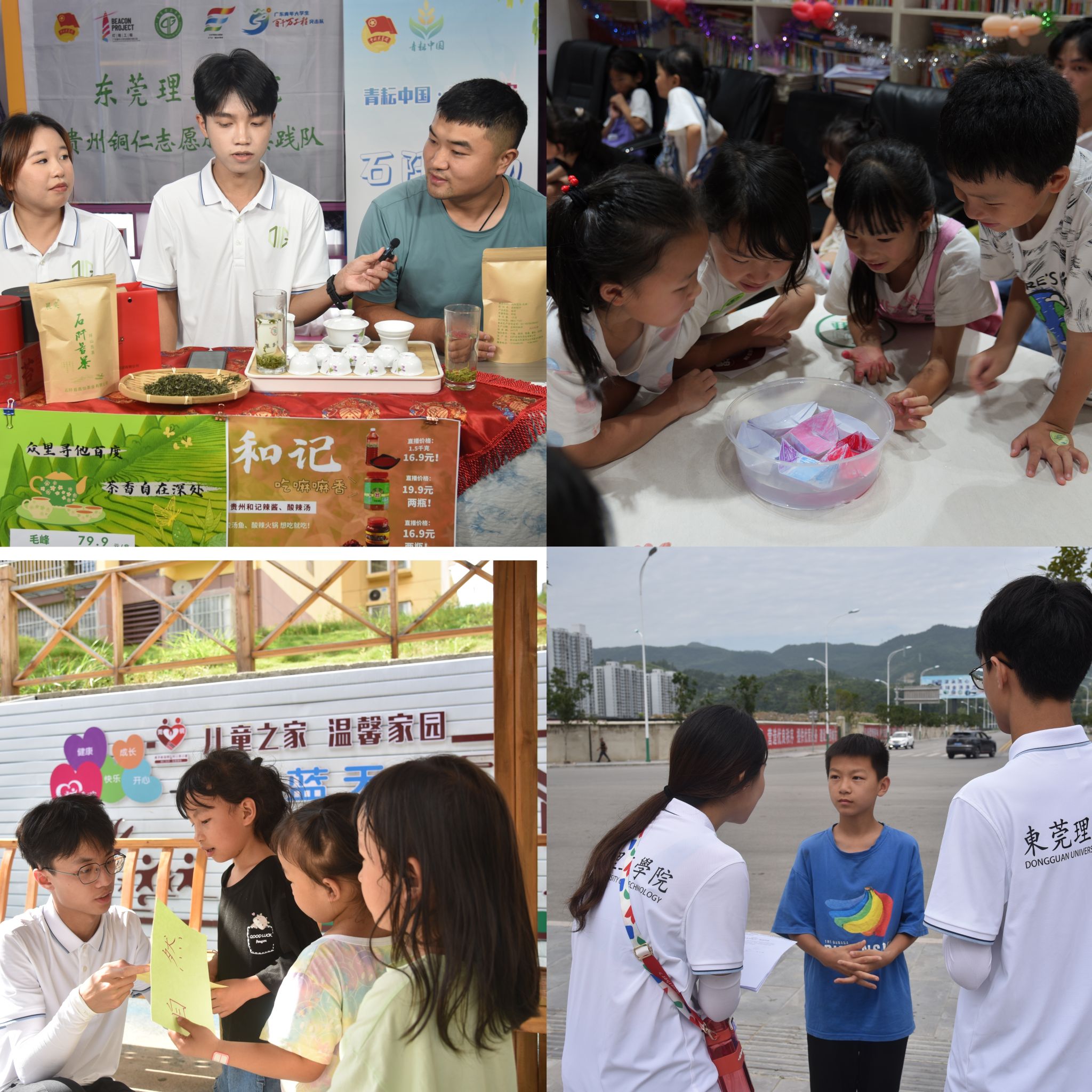 2023年,“莞工铜学”实践队深入当地平阳社区,开展推普游园会和青年儿童脱口秀开展推广普通话文化活动,并结合机械、材料等学科专业知识,首推科学实验科普活动,组织社区少年儿童亲手实验,用寓教于乐的方式坚定科创报国理想信念。并利用时兴方式,组织铜仁特色的农货直播销售会,同学们认识了石阡苔茶、黄水粑、黄桃、辣椒酱等优质特产,积极推广,共开展3场公益助农直播,实现31.2万点赞量。以乡村脱口秀为主题,灵活运用讲授式、模拟式、互动式、体验式等教学方式进行语文教学,增强课堂感染力,开展了2场推普游园会共吸引了100余名儿童,其中最小的仅为4岁,活泼的课堂教学深受他们喜爱,锻炼了语文表达能力,展示了兴趣特长。入选“推普助力乡村振兴”全国大学生暑期社会实践志愿服务活动全国优秀示范队伍,实践队指导老师劳丹获得全国大学生暑期社会实践志愿服务活动先进个人。
