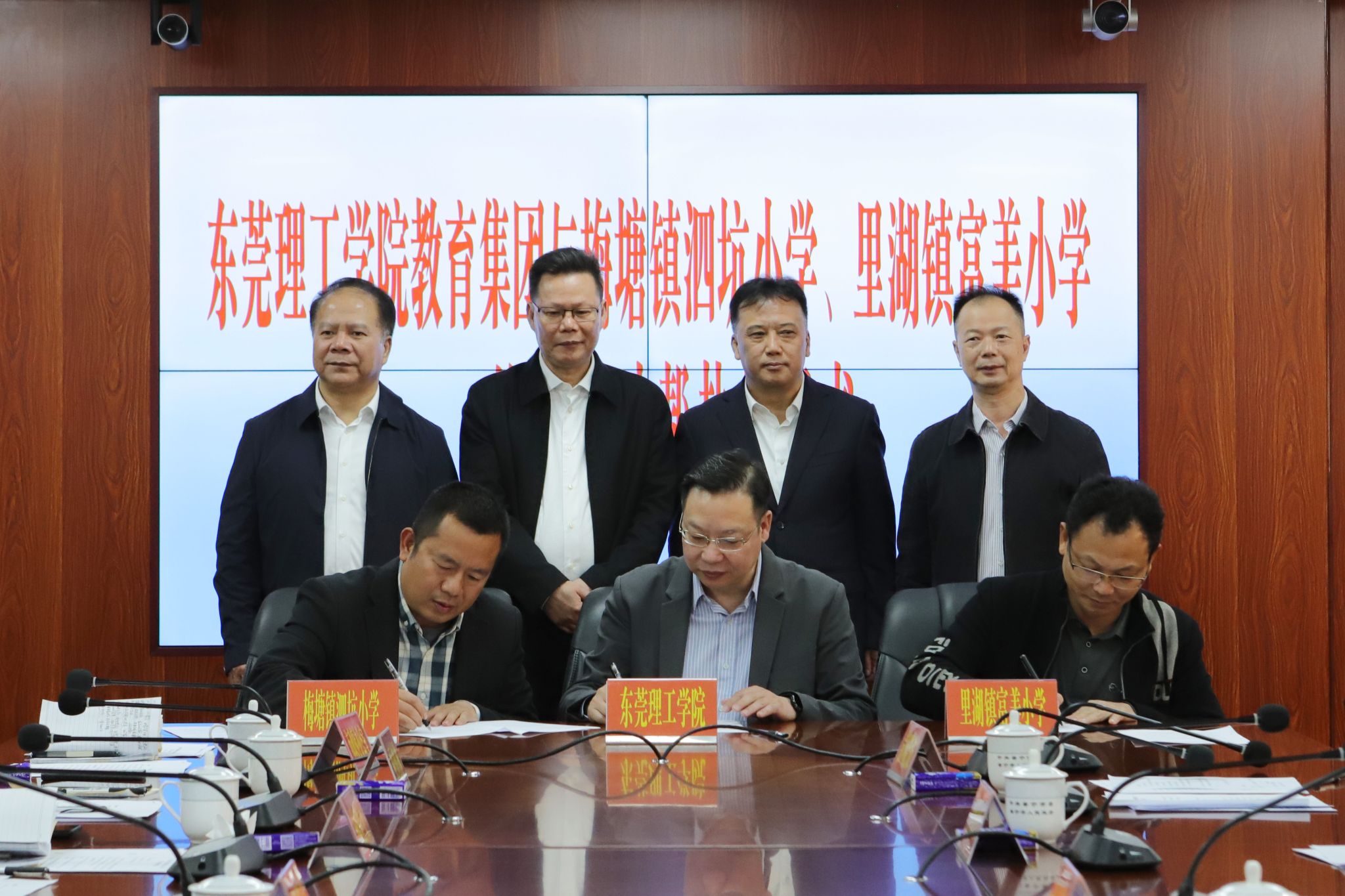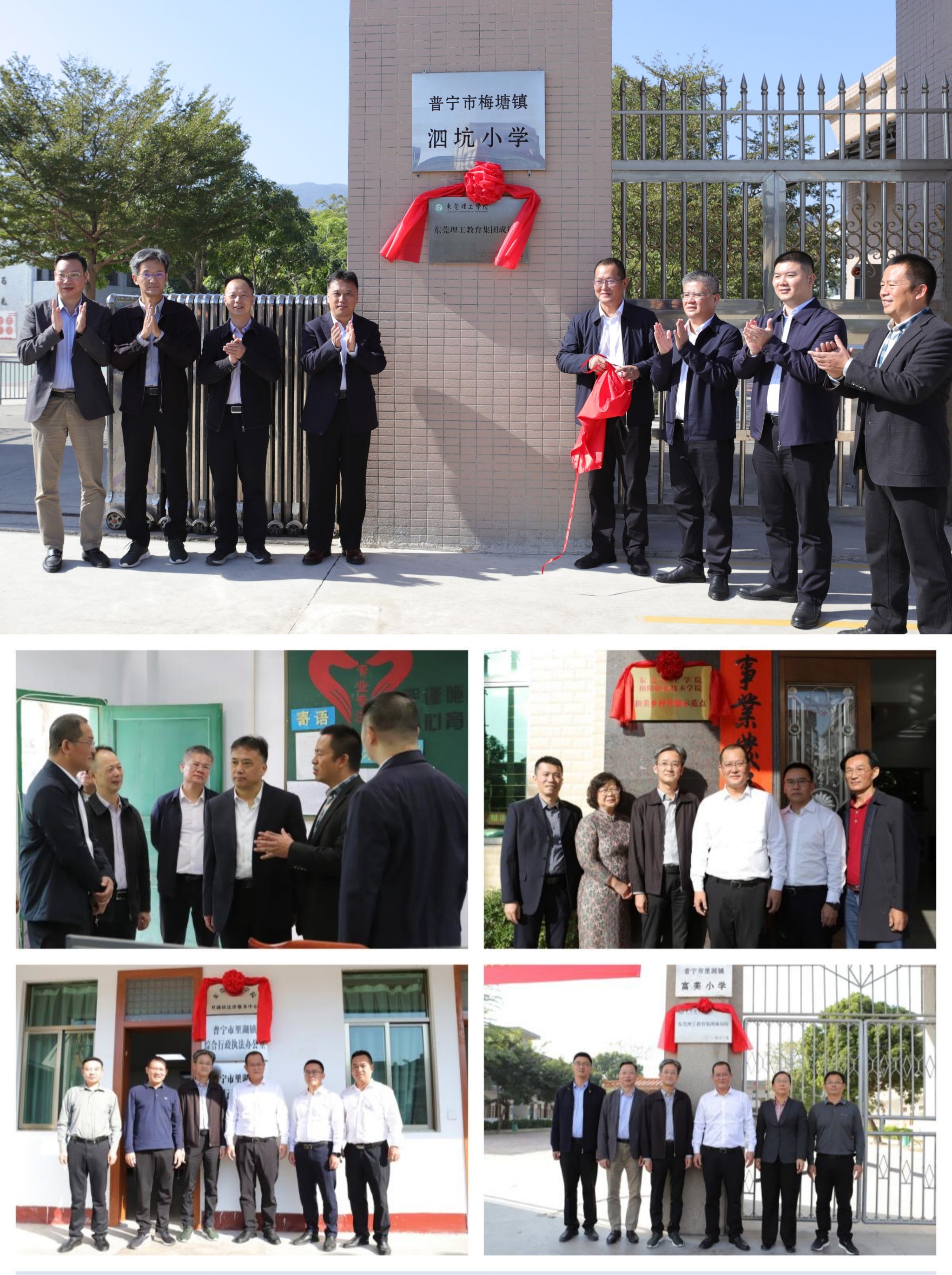 会后,我校一行先后来到梅塘镇泗坑小学、里湖镇富美小学、里湖镇富美村等地,依次进行东莞理工教育集团成员校揭牌仪式、45612藏宝阁资料里湖镇法律服务中心揭牌仪式以及“和美乡村”共建示范点揭牌仪式。