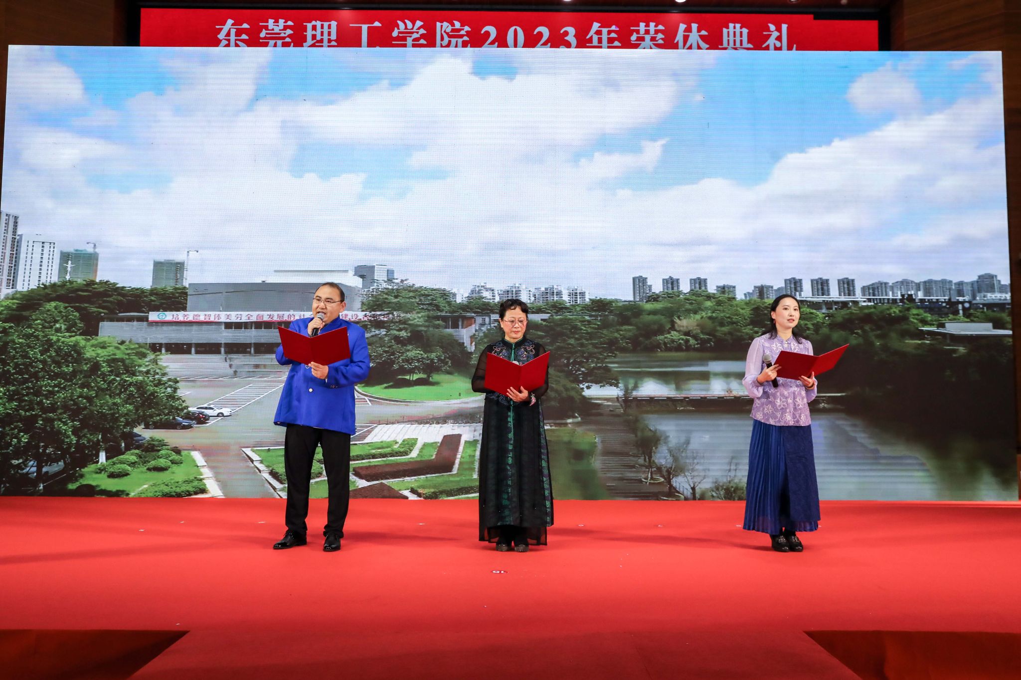 李忠红指出,举行荣休典礼是学校弘扬尊师重教之风的重要举措,是真诚致谢荣休教职工付出的庄重典礼,是激励所有师生向高质量跃升发展目标不懈奋斗的响亮号角。他希望各位荣休教职工能继续关注和支持学校的改革发展,继续秉持教育初心、牢记职责使命,以更高的责任感做好莞工精神的传承者和莞工故事的讲述者;希望青年教师赓续优良传统,焕发奋进力量,不负重托,以更加饱满的热情、更加昂扬的斗志、更加务实的作风,为学校高质量跃升发展立新功。