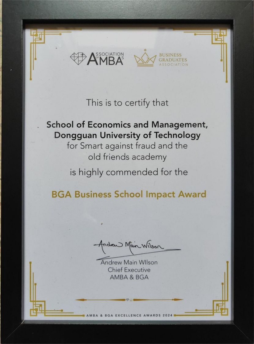 近日,在英国举行的2024 AMBA&BGA商学院卓越奖颁奖典礼上,我校经济与管理学院在BGA商学院影响力奖项的激烈竞争中脱颖而出,喜获BGA商学院影响力强荐奖(Highly Commended)。