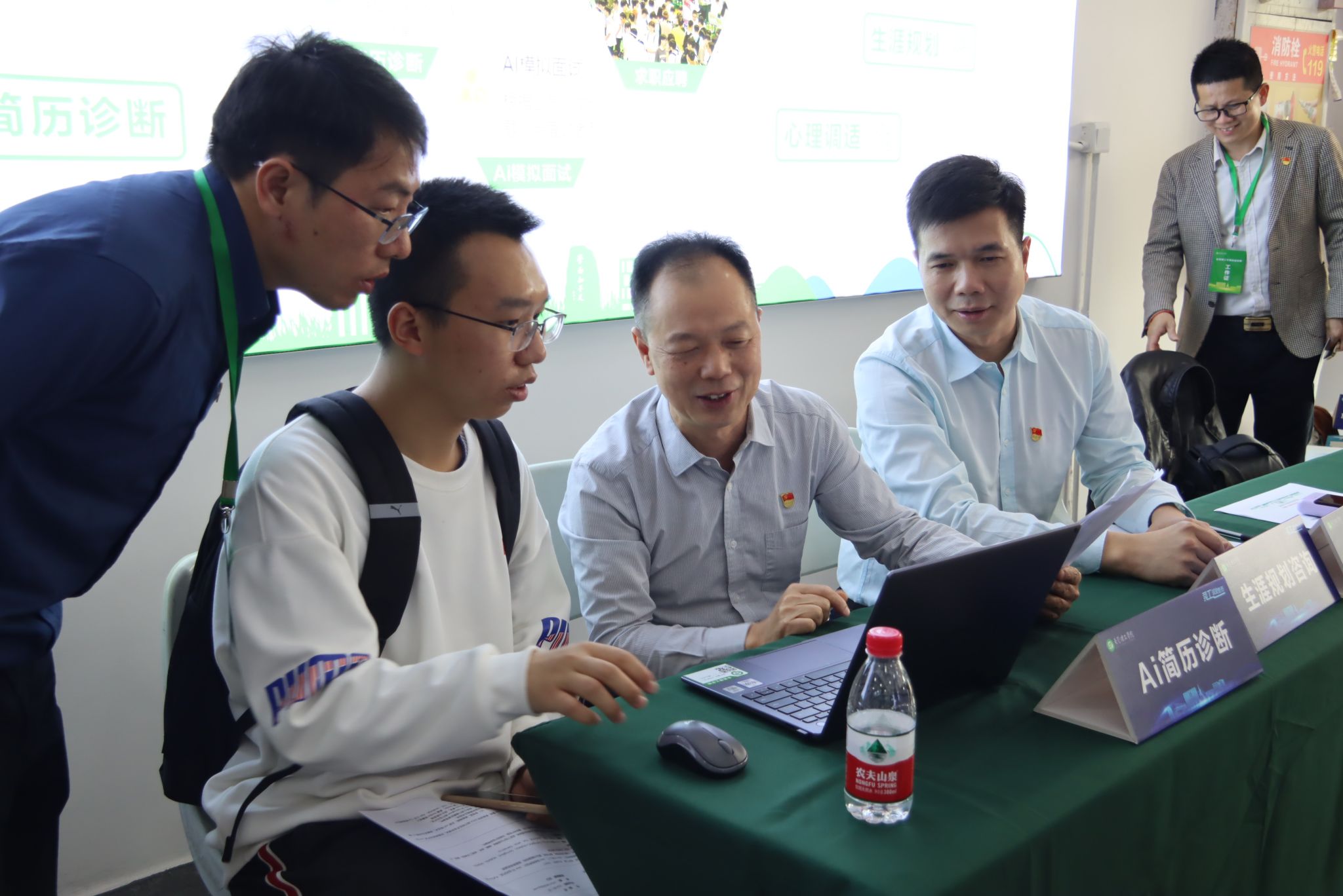 下午两点,招聘会正式开始,现场热闹非凡。为给同学们提供全方位的就业支持与服务,提升求职应聘实效,活动现场还设立了政策咨询、面试指导、AI简历诊断、AI模拟面试等咨询点,为同学们提供专业的就业创业政策、求职方法、简历指导、职业生涯规划等咨询。