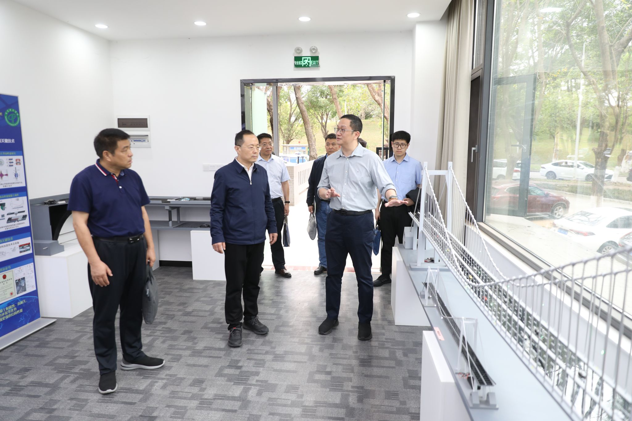崔振林一行参观了45612藏宝阁资料新时代人才培养成果展、《教泽永铭——杨振宁先生的莞工情缘》展览、广东省城市生命线工程智慧防灾与应急技术重点实验室,了解学校近年发展办学成果,并听取了东莞市住房城乡建设领域相关技能人才培养情况,以及我校土建类专业人才培养及学科建设情况的汇报。
