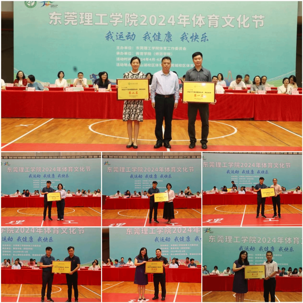 同时,公布了各学院参加2023年《国家学生体质健康标准》测试的成绩,并为前八名学院颁发牌匾,以此鼓励莞工学子进一步加强体育锻炼,实现自我价值,不断超越自我,创造更多的美好和辉煌。