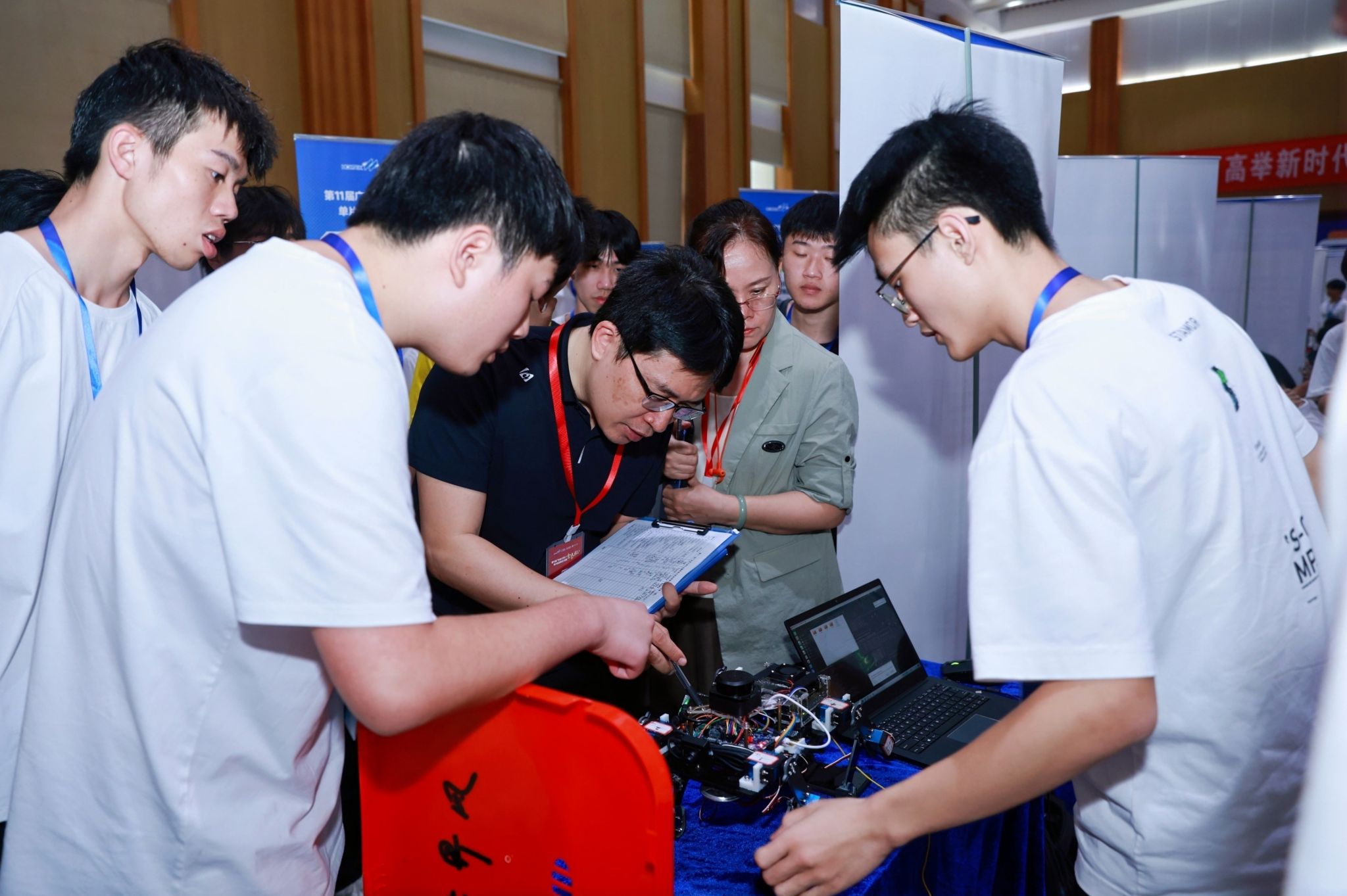 开幕式结束后,参赛选手回到展位,对作品进行了安装、调试,等待评委老师的评审。