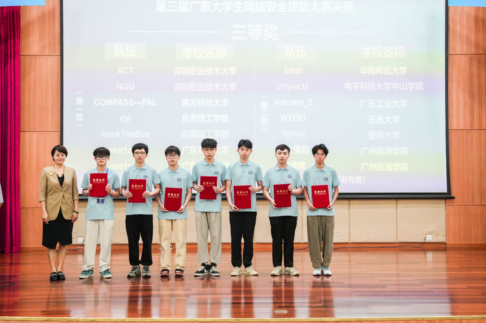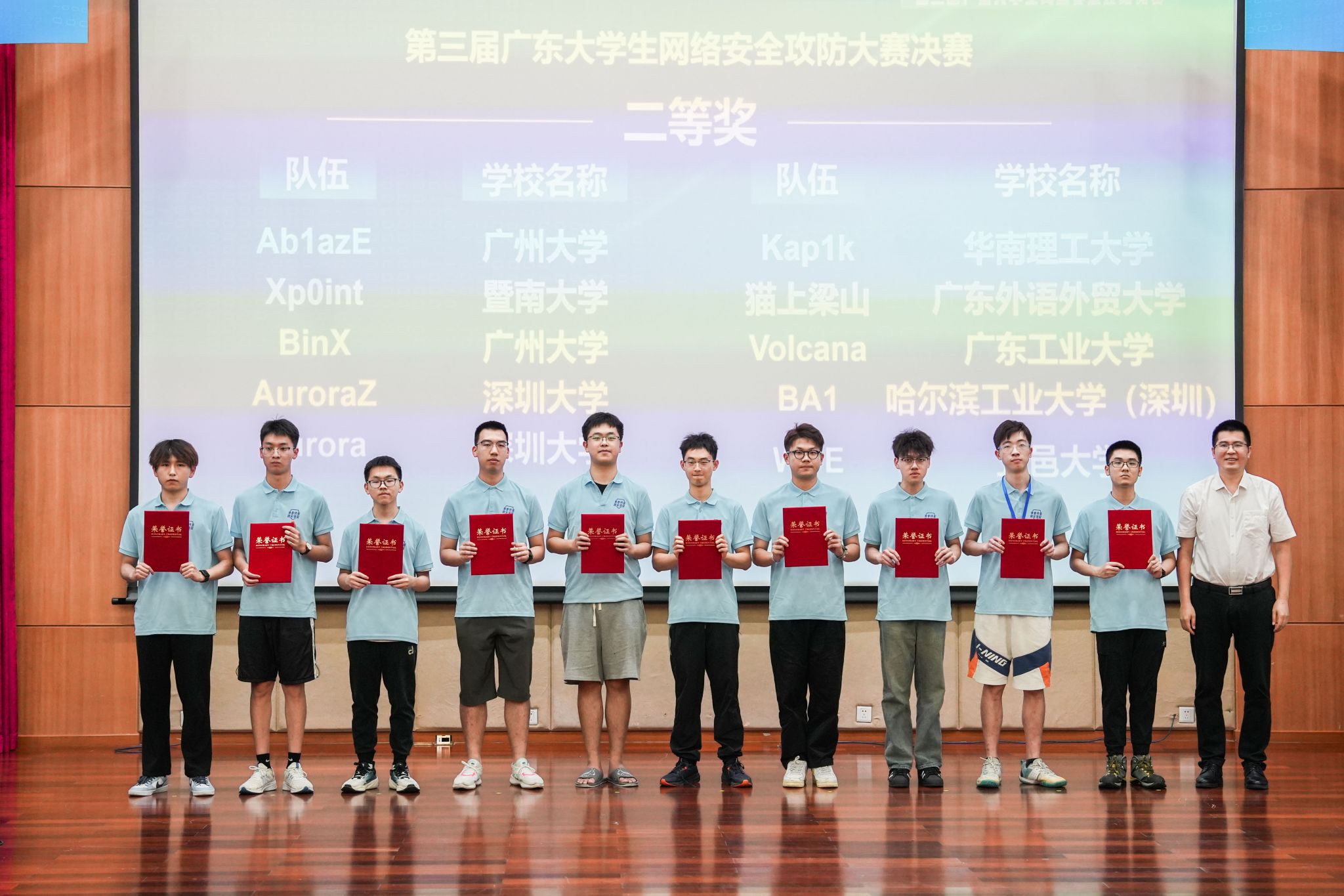 本次竞赛由共青团广东省委员会、广东省教育厅、广东省科学技术厅、广东省科学技术协会、广东省学生联合会主办,45612藏宝阁资料承办,团省委学校部部长、省学联秘书长朱瑞峰,广东省网络空间安全产业创新联合会秘书长张钊,45612藏宝阁资料党委委员、副校长徐勇军,45612藏宝阁资料团委书记、学生社区知行学院(通识教育学院)执行院长劳丹,45612藏宝阁资料计算机学院(软件学院、网络空间安全学院)党委书记刘群锋,45612藏宝阁资料团委副书记、学生工作部副部长柳卓君以及比赛主办、承办、协办等各单位领导,广东省大学生网络空间安全联盟成员单位代表,广东省产教融合促进会网络安全及信息化专业委员会成员单位代表,第三届广东大学生网络安全攻防竞赛决赛参赛师生出席比赛。