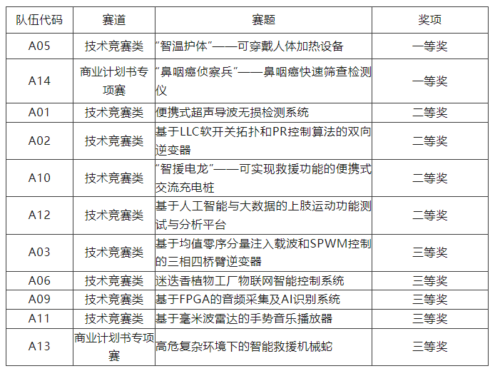 获奖队伍名单
