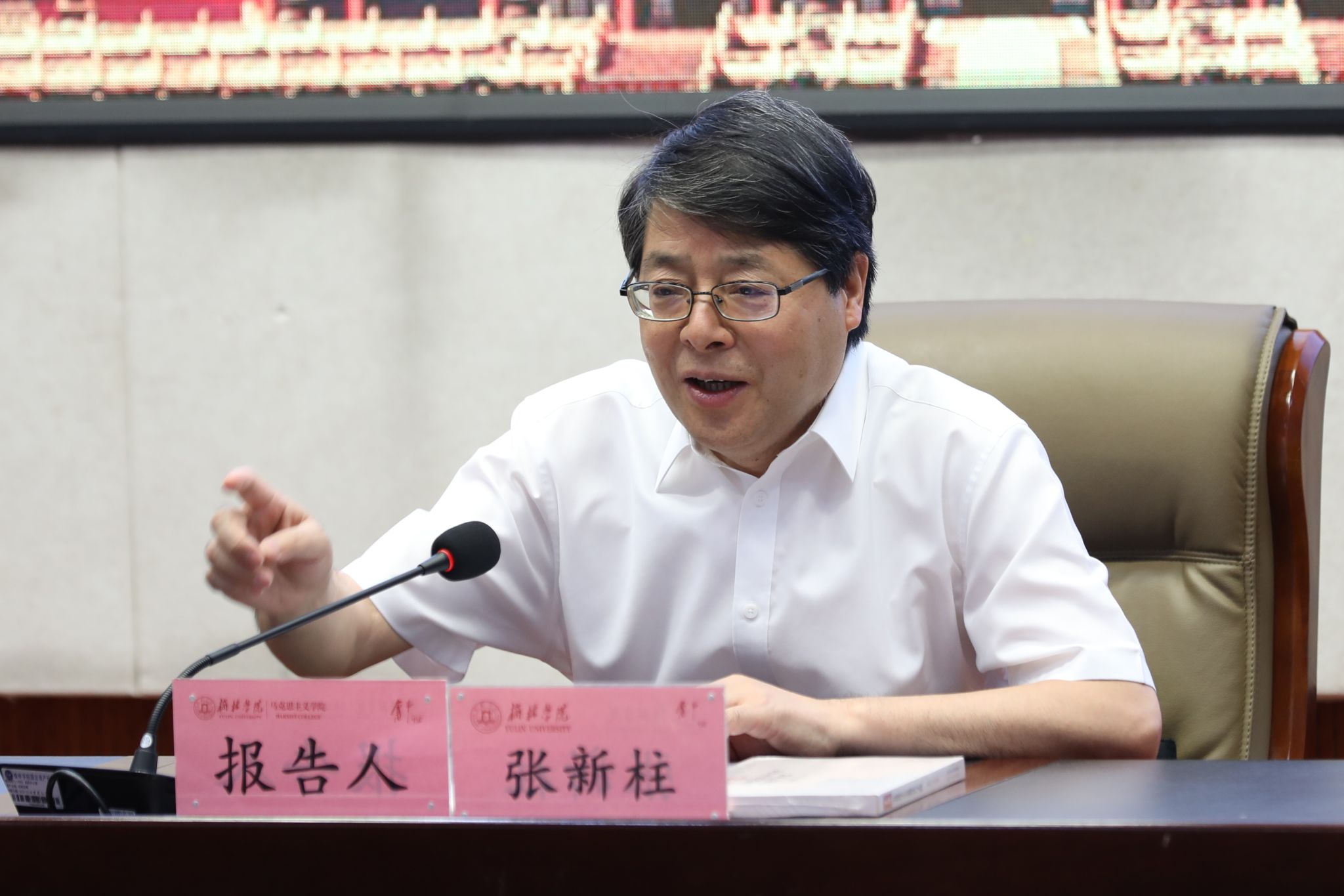 张新柱围绕习近平总书记关于党的建设的重要思想的主要内容和鲜明特点、新时代高校党建工作的基本遵循、高校党建工作存在的问题与困惑、新时代高校党建工作的对策探讨、以党建为引领推动高校高质量发展等五方面,系统阐释了学习贯彻习近平总书记关于党的建设的重要思想,以高质量党建引领学校高质量发展。