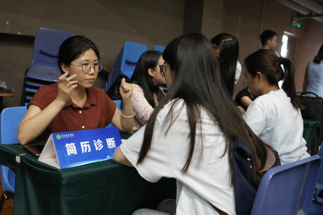在招聘会的功能区中,简历诊断功能区前学生们络绎不绝。老师们为前来咨询的学生提供一对一的简历修改和优化建议。学生们纷纷带着自己的简历前来,希望能够在老师们的指导下,更好展示自己的能力和实力,提升求职成功率。