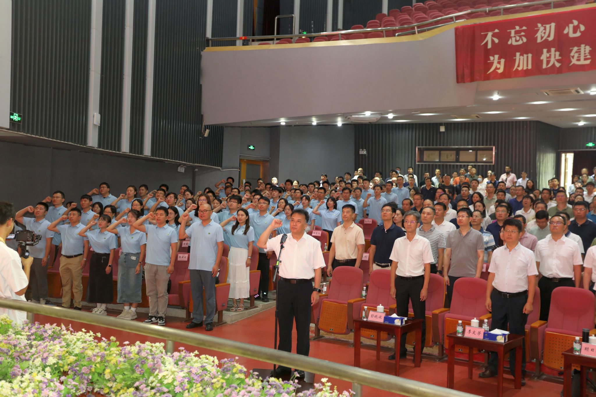 “我志愿成为一名光荣的人民教师……”在校党委副书记、校长马宏伟的带领下,在全场参会人员的见证下,学校新一批新进教职工佩戴校徽,面向国旗庄严宣誓,承诺必将坚定政治方向、潜心教书育人、遵守学术规范、严守纪律规矩、廉洁从教从业,做“四有”好老师,为党育人、为国育才,为新型高水平理工科大学示范校建设而努力奋斗。