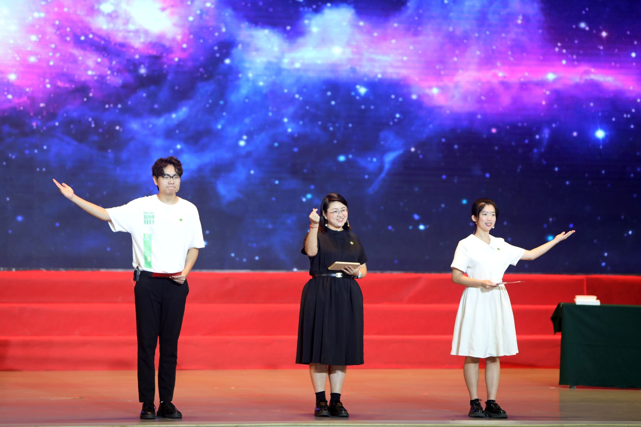 校友代表张菲(2007届毕业生)与学生代表胡璟昊、李慧雯携手带来朗诵《园丁礼赞》,深情讲述一棵树如何摇动另一棵树,一朵云如何推动另一朵云,一个灵魂如何唤醒另一个灵魂。校友和同学们还为老师们录制了祝福视频,表达对老师们的感激之情。