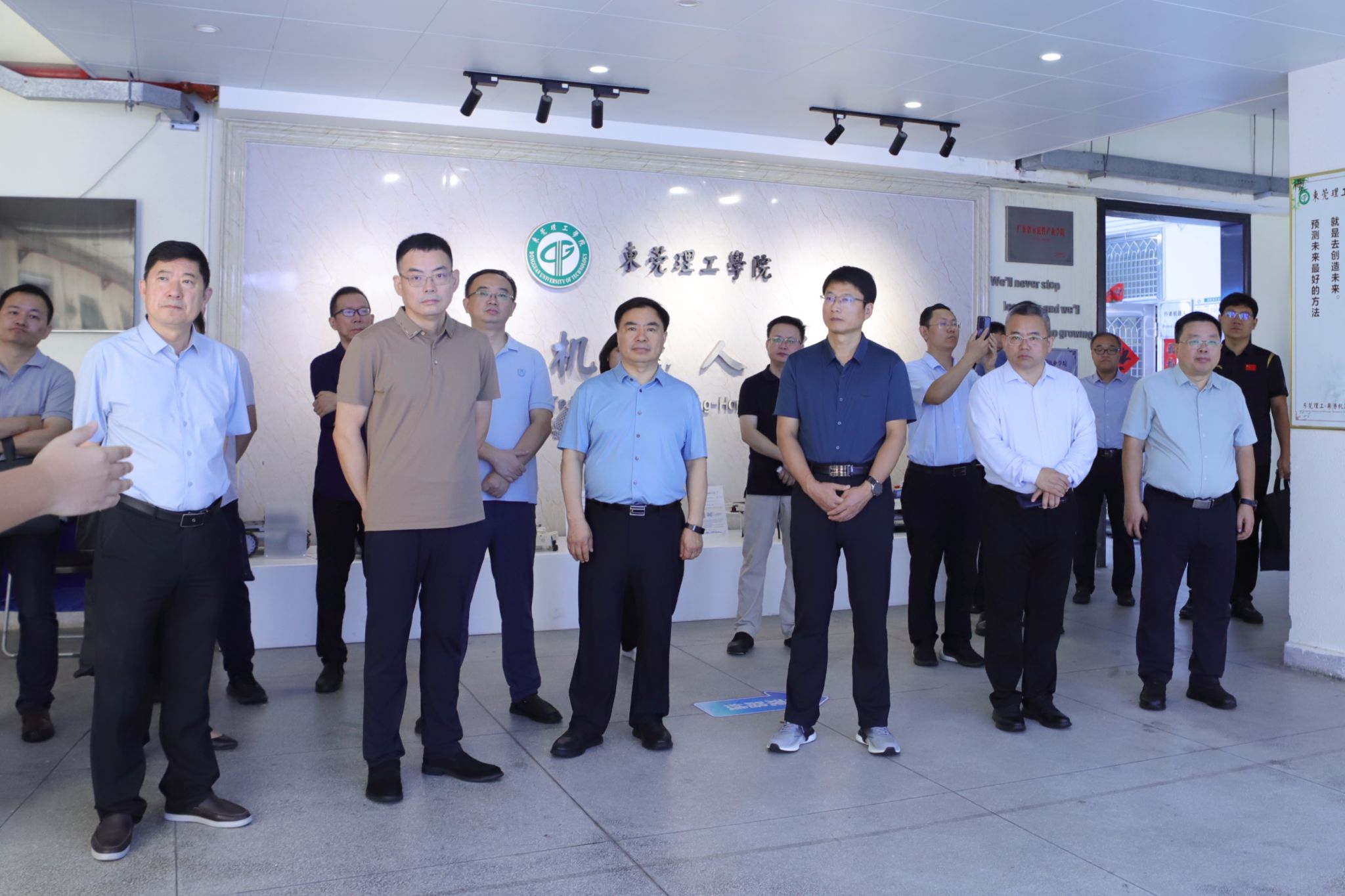 考察团一行参观了机械工程学院数字装备工程训练中心、粤港机器人学院,深入了解我校现代产业学院建设经验做法以及产教融合新工科人才培养模式。