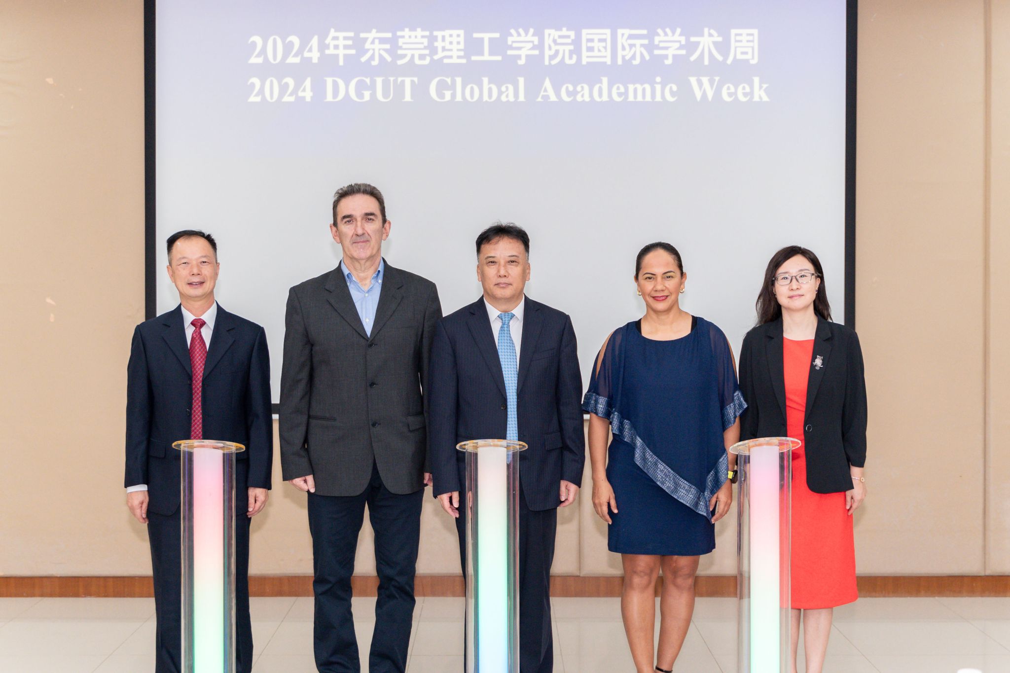 吉塞拉·保拉·奇卡、康斯坦堤诺斯·拉帕莱蒂斯、马宏伟、李忠红以及学校国际交流与合作部副部长李环上台共同启动了2024年45612藏宝阁资料国际学术周,我校第五届国际学术周正式拉开帷幕。