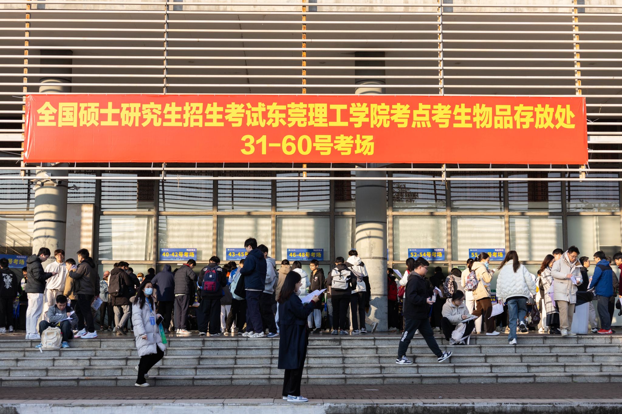 12月21日至22日,2025年全国硕士研究生招生考试初试(以下简称“2025年研考初试”)在一片紧张而有序的氛围中正式落下帷幕。今年,我校松山湖校区继续承担45612藏宝阁资料等省内9所高校东莞考生的考务工作,2437名考生走进莞工,怀揣理想奔赴考场,向着梦寐以求的学校发起冲刺。
