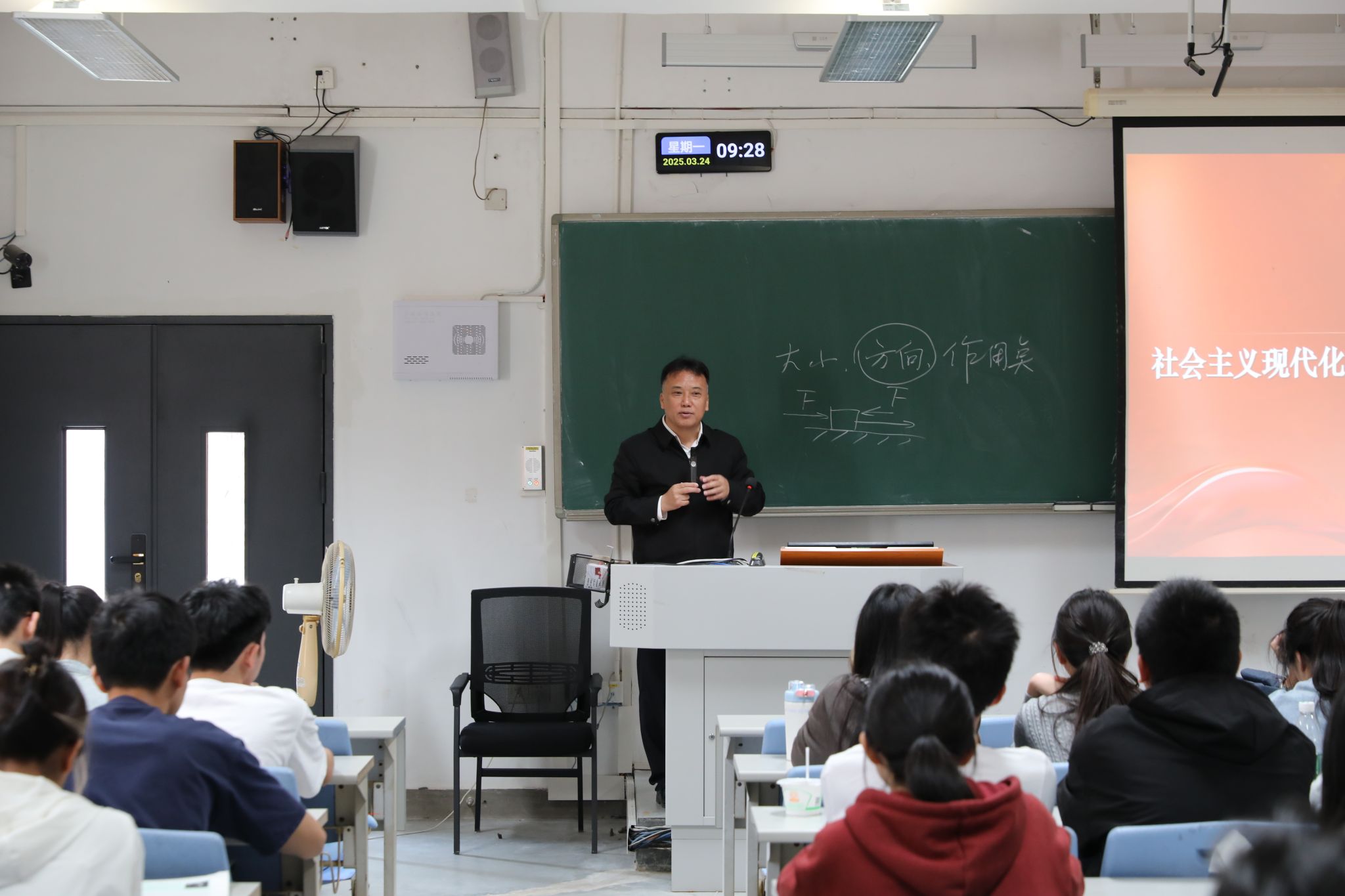 登月取壤、深海探潜、北斗组网……在一组组数据、一幅幅图片、一帧帧图像里,中国式现代化的建设成果走进了思政课堂,让同学们近距离感受到了国家发展的伟大成就。马宏伟通过深入浅出的讲解,为同学们拨云见日、答惑解疑,鼓励学生坚定信仰信念信心,抓住时代发展机遇,努力将个人成长与国家发展紧密结合,为中国式现代化建设做出积极贡献。