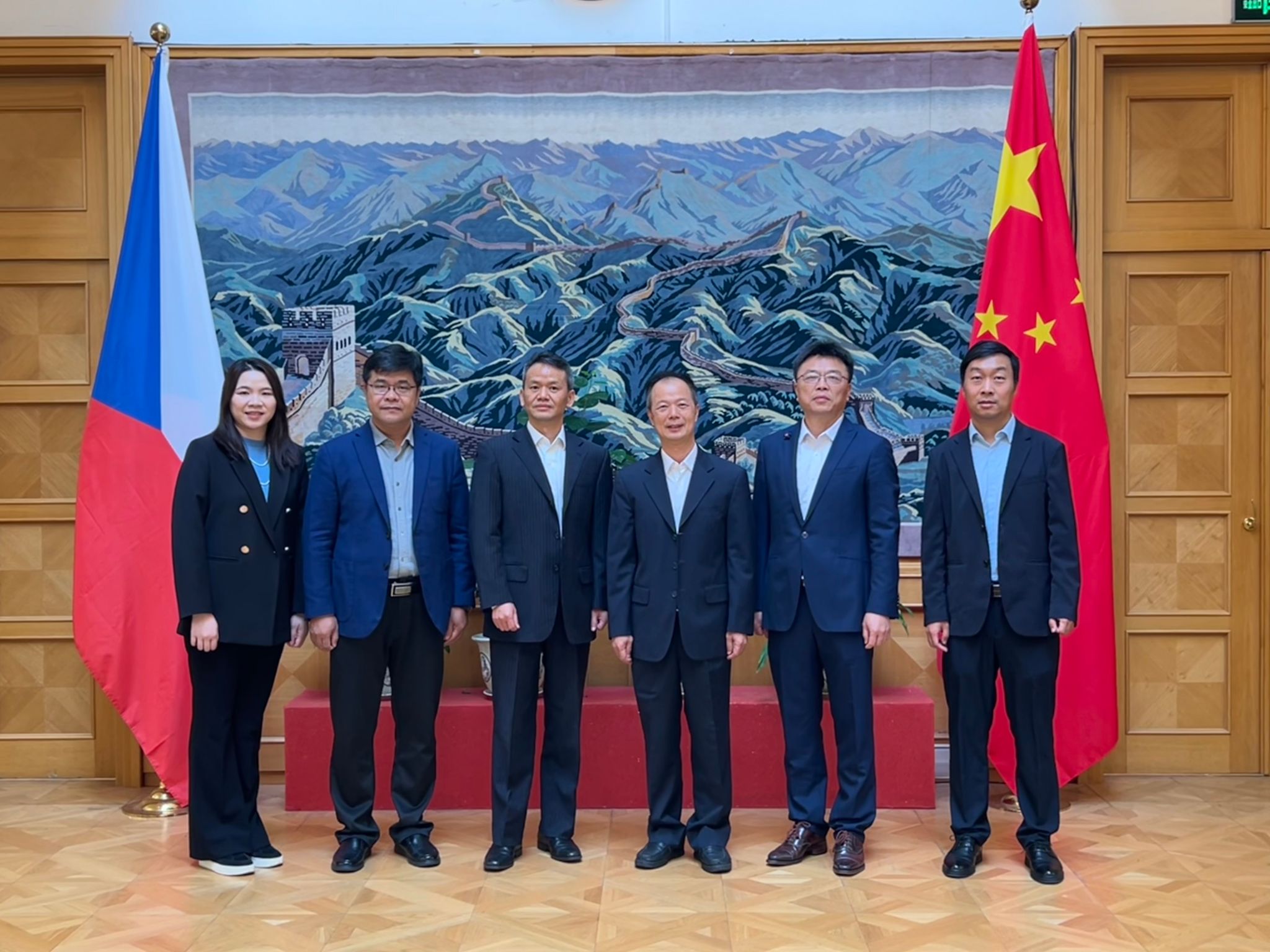 在捷克期间,出访团组还拜会了中国驻捷克大使馆,向科技事务负责参赞蒋玉宏、教育事务负责人蒋宇鹏汇报学校与捷克高校合作情况,蒋参赞对学校与捷克高校合作表示认可和支持,鼓励学校加大力度对捷开展科技、教育、人文等方面合作,积极与捷克更多高校开展科技交流、师生互访、来华留学生等务实合作。