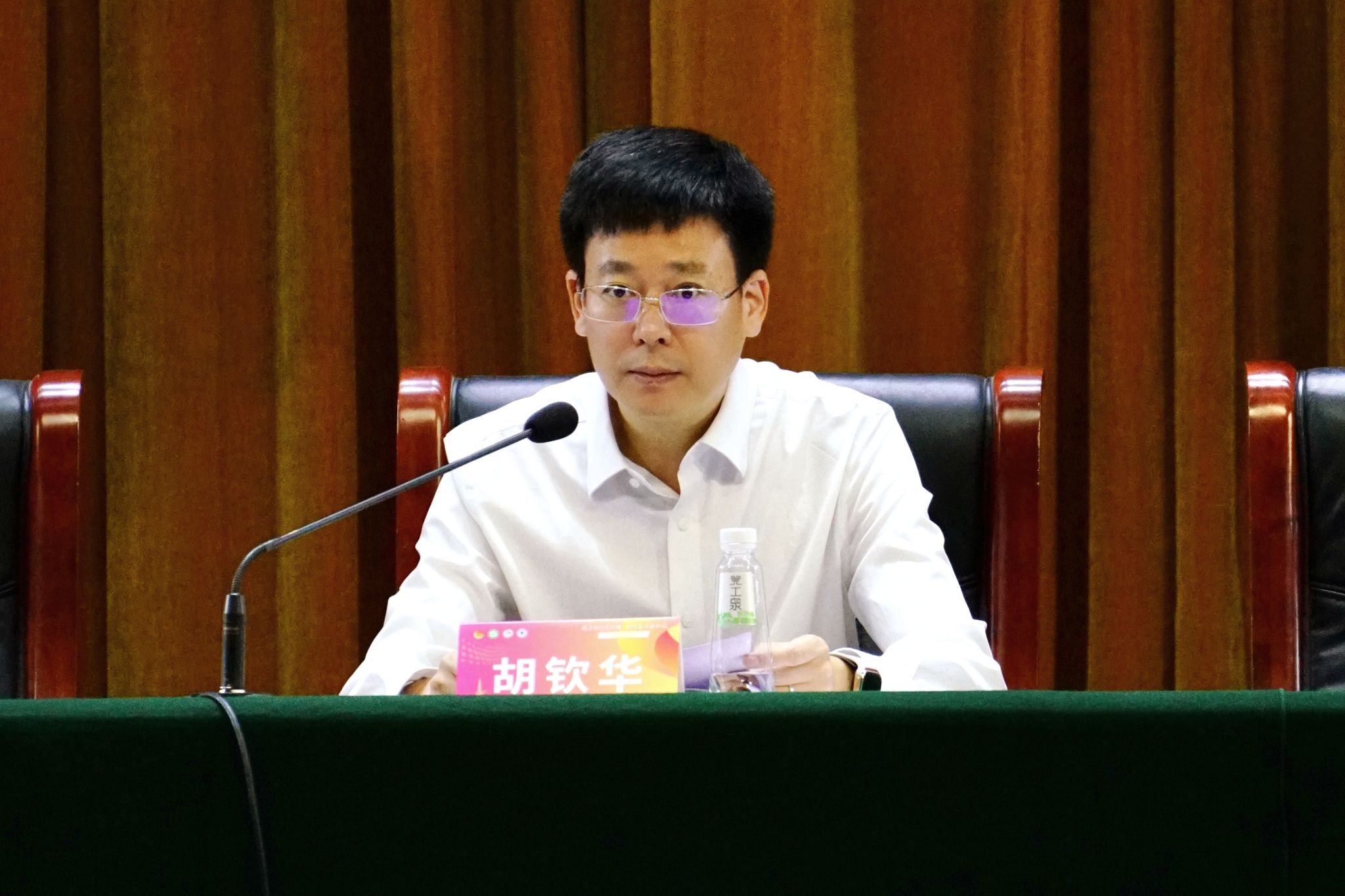 胡钦华代表学校党委和行政向大会的召开表示热烈祝贺。他在讲话中特别表达了对学校名誉校长、科学巨擘杨振宁先生的深切缅怀。他指出,杨先生一生践行科学报国的初心,为学校留下了弥足珍贵的精神财富,过去一年各级学生组织以实际行动诠释着这份精神的时代内涵。胡钦华充分肯定了一年来学生组织在思想政治引领、学风建设、权益服务等方面取得的扎实成效,并寄语全体青年学子:一要坚定理想信念,做莞工精神的传承者,自觉践行“爱国奋斗、追求卓越”的莞工精神,把“党有号召、我必行动”真正刻进骨子里;二要深耕专业学习,做本领过硬的追光者,充分利用散裂中子源、材料科学实验室等重大科研平台,勇攀学术高峰;三要勇担时代使命,做实干担当的奋斗者,主动对接国家战略,积极参与“百千万工程”,把论文写在祖国大地上。
