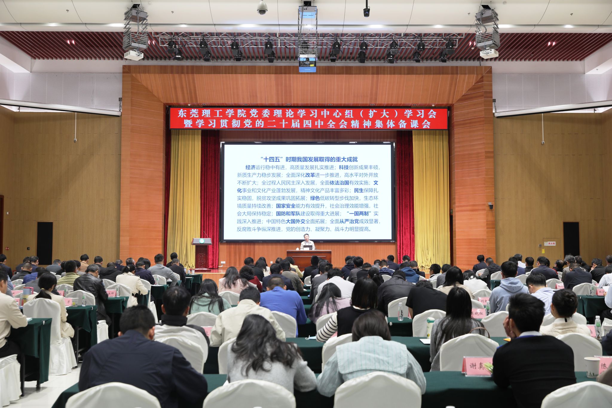 11月27日,学校召开党委理论学习中心组(扩大)学习会,深入学习贯彻党的二十届四中全会精神及习近平总书记视察广东和出席第十五届全国运动会开幕式重要讲话重要指示精神,贯通学习《习近平谈治国理政》第五卷。同时套开学习贯彻党的二十届四中全会精神集体备课会。校党委理论学习中心组成员、固定列席人员、全体中层干部和辅导员参加会议。