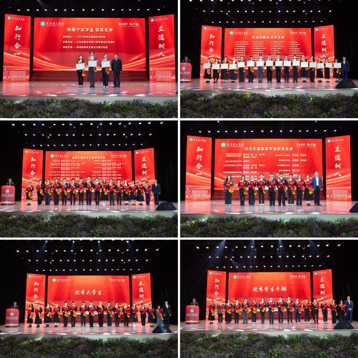 校领导、企业代表分别为杨振宁奖学金、先进班集体、国家奖学金、优秀大学生、优秀学生干部和社会奖学金的获奖代表颁奖。