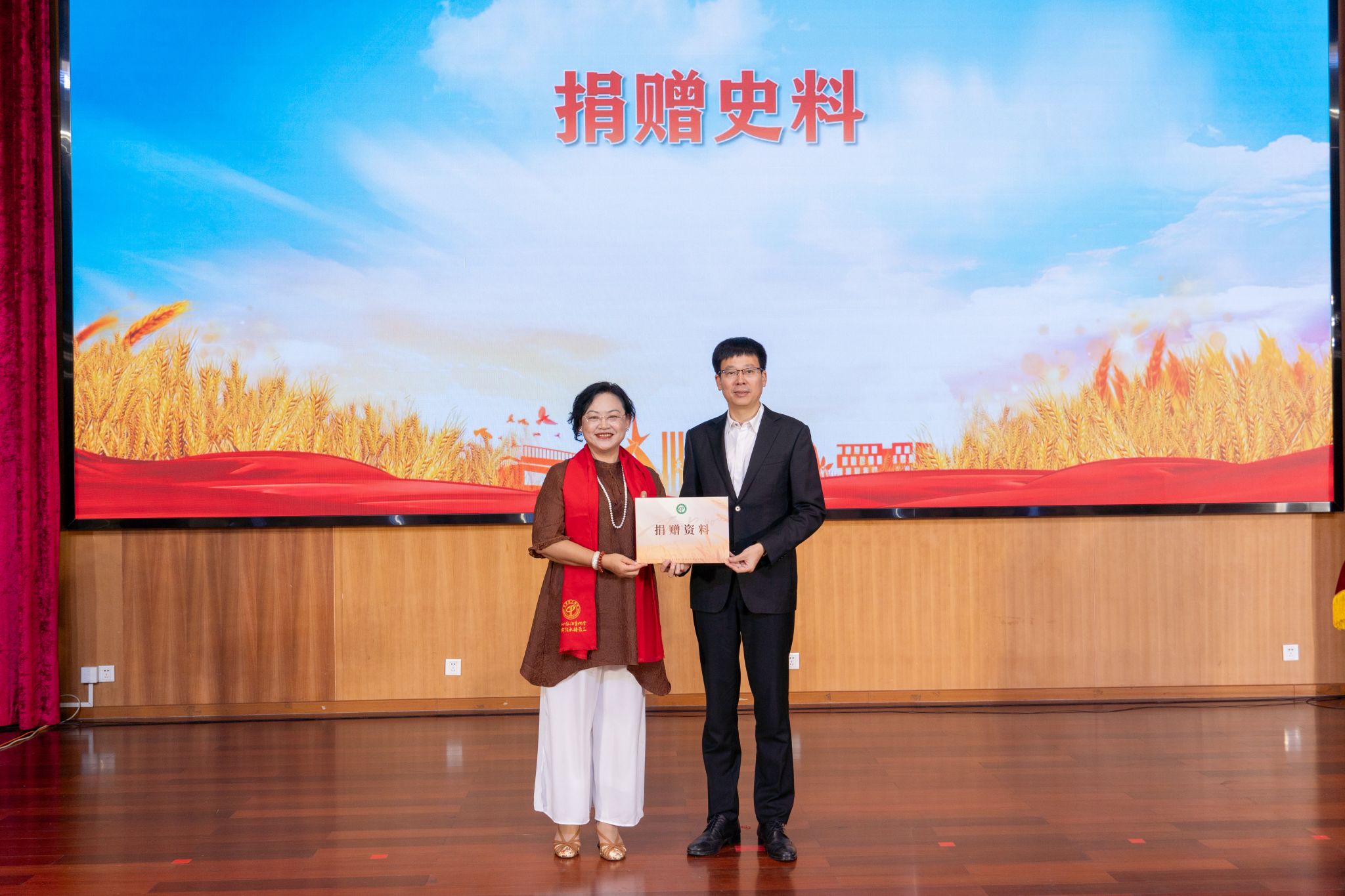继续教育学院邹胜美老师代表荣休教职工向学校捐赠史料,校党委委员、副校长胡钦华代表学校接受捐赠并向其颁发捐赠证书。这些珍贵的史料,不仅是个人职业生涯的见证,更是学校发展的历史印记,寓意着精神的传承与延续。