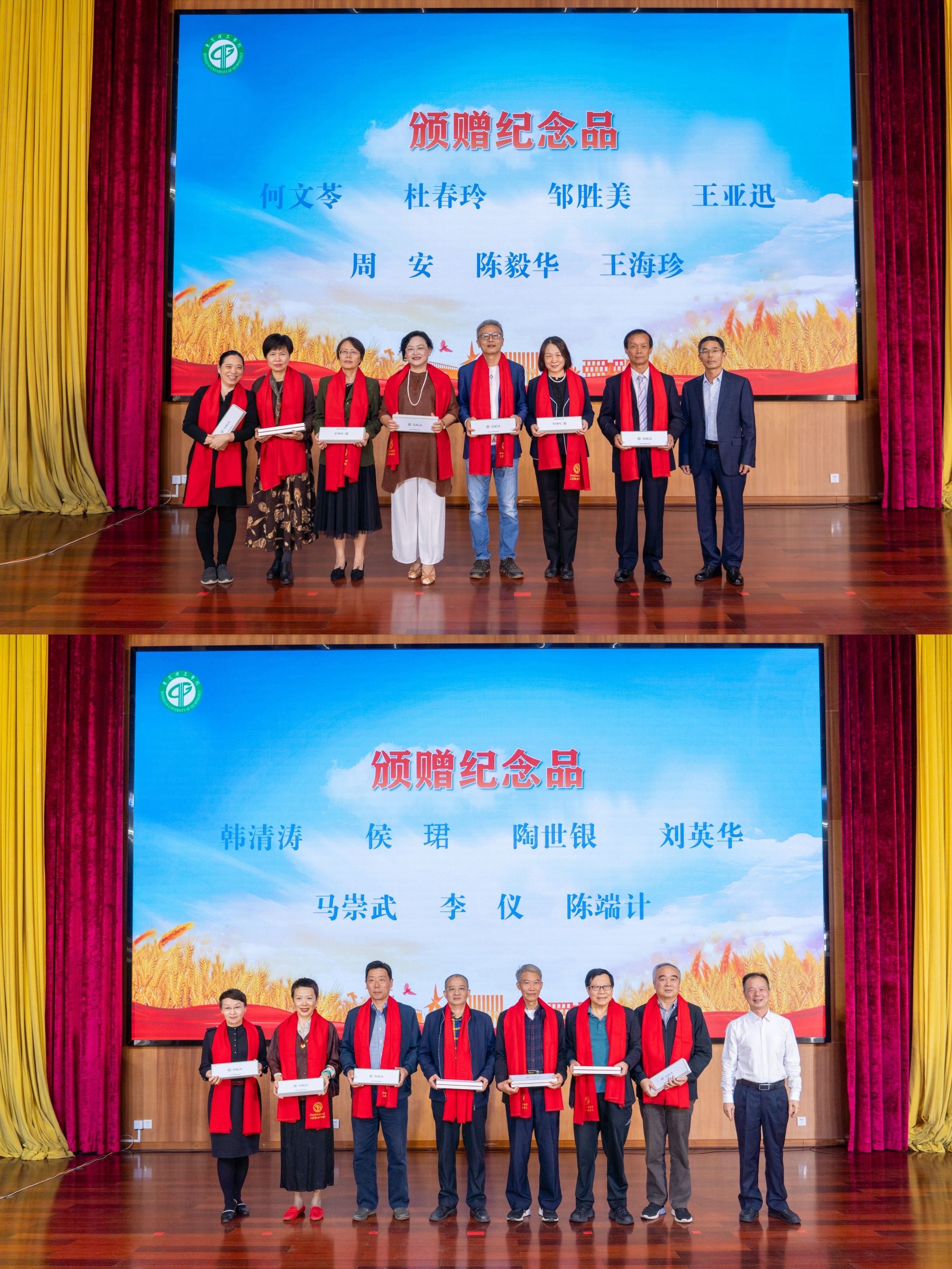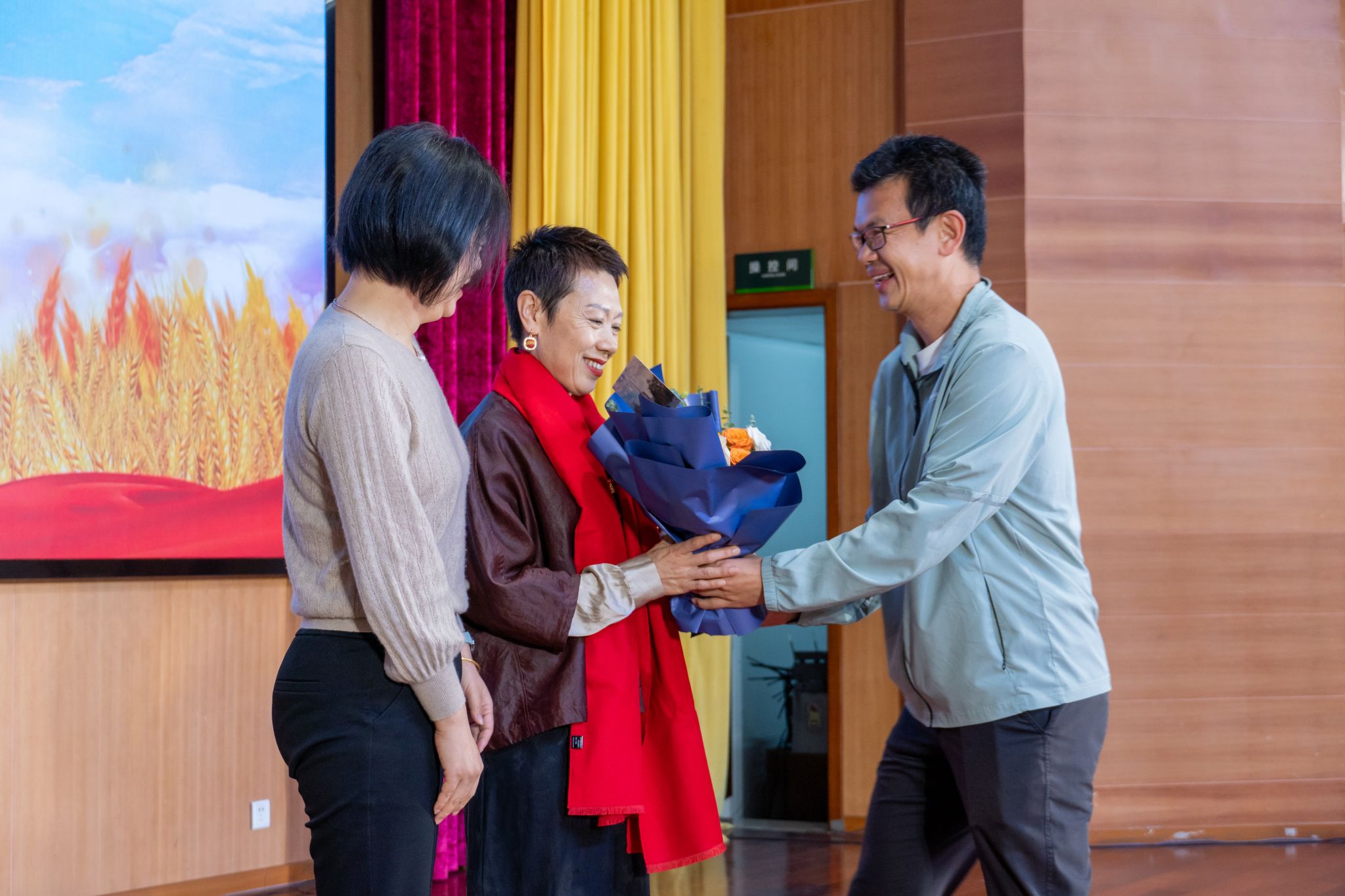 校党委副书记、纪委书记、监察专员赖日辉,党委副书记李忠红分别为到场的荣休教职工颁赠纪念品。一份份精心准备的纪念品,承载着学校对荣休教职工的深厚情谊与诚挚感谢。
