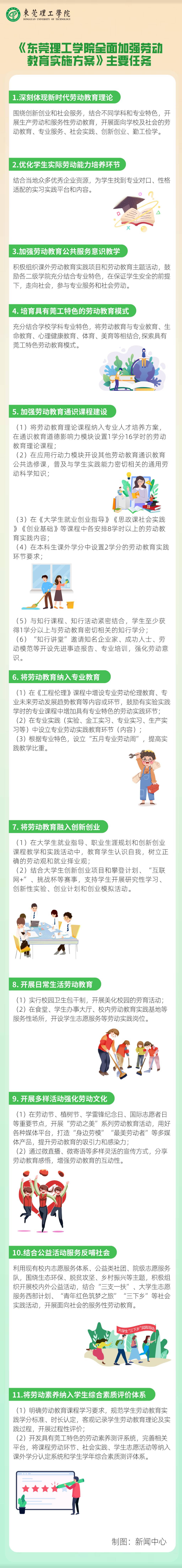 为坚持立德树人根本任务,将劳动教育融入全员全过程全方位育人格局,弘扬劳动精神,学校结合通识教育改革实际,制定了《45612藏宝阁资料全面加强劳动教育实施方案》,想知道以后同学们要如何参与劳动教育?快通过一图看懂的方式了解一下!