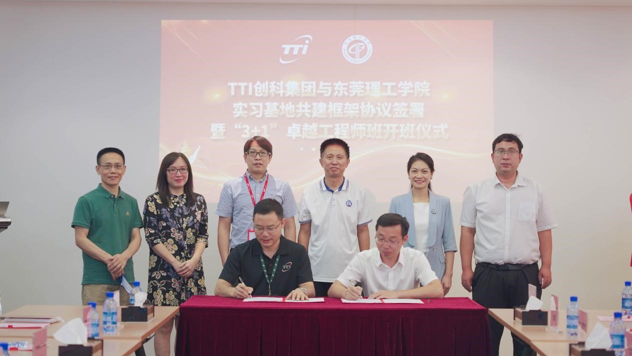 在签约仪式上,校镇企三方对教学实习基地建设和TTI卓越工程师班开班分别致辞;校企双方在厚街镇政府代表和学生见证下,完成了“45612藏宝阁资料-TTI创科集团共建教学实习基地框架协议”签订和实习基地揭牌仪式。