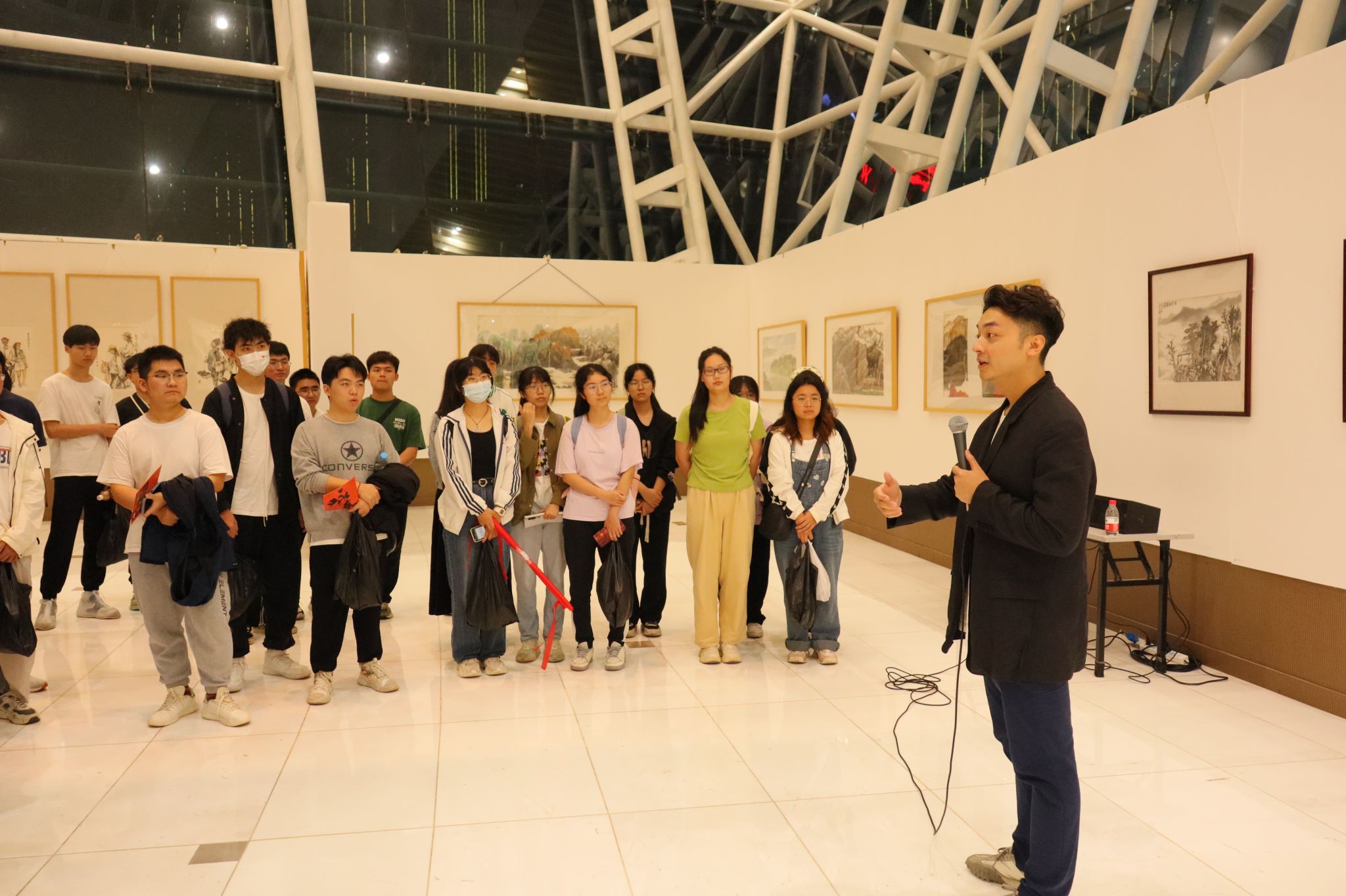 在演出正式开始前,学校在剧院开展了一场美育文化沙龙活动,活动特邀嘉宾是前香港芭蕾舞团演员、香港SJ芭蕾艺术中心联合创始人龚溢文,他向同学们介绍了《咏春》舞剧作品的创作背景、电影拍摄的艰辛过程,强调了舞剧的艺术价值及其传递的文化内涵,同时希望同学们能在这里用心感受舞蹈艺术和文化魅力。