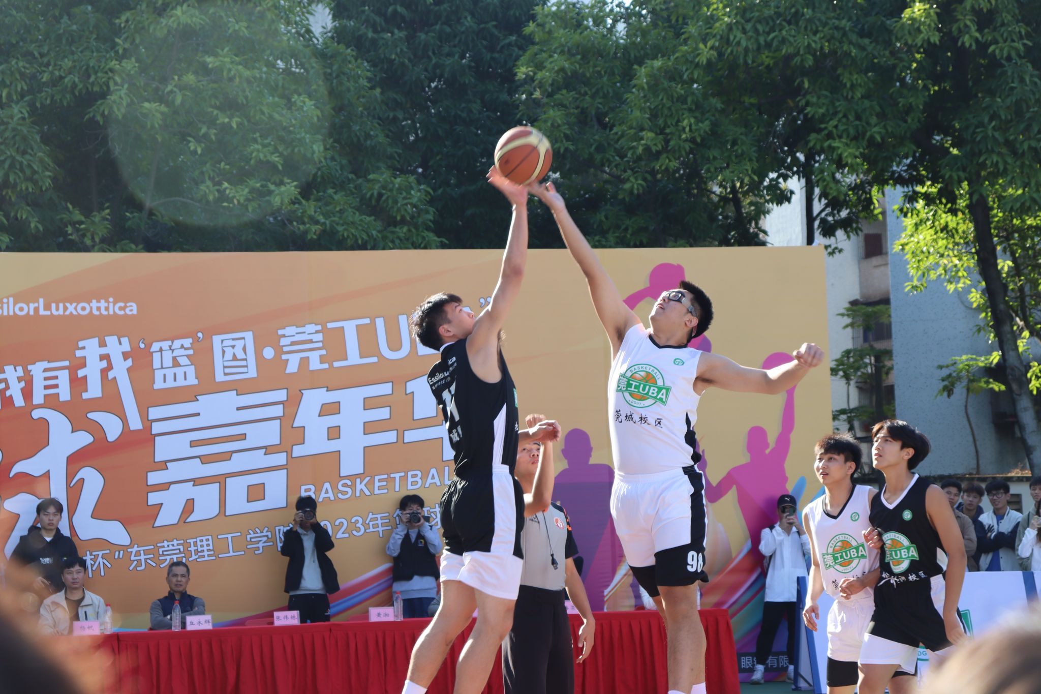 此外,莞工UBA借力东莞篮球文化,吸纳中国NBA第一人宋涛、在各大网络平台人气颇高的东莞耐撕街头篮球空间主理人邓丹等篮球明星专家助阵赛事活动,借用他们场内外的影响力,打开高校青年学生的篮球视野,号召更多年轻人走上篮球场。同时,莞工UBA注重引流社会力量,获得陆逊梯卡华宏(东莞)眼镜有限公司给予的经费支持赞助,并促进了校企双方的互动交流,籍此双方的共同努力,不断提高办赛水平。