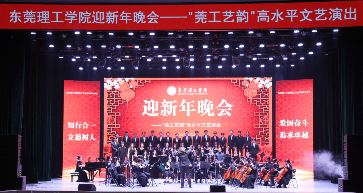 12月28日晚,由教育学院(师范学院)承办的“迎新年晚会——‘莞工艺韵’高水平文艺演出”在松山湖校区礼堂上演。校领导赖日辉、李忠红、杨敏林,各职能部门及二级学院负责人,奖学金捐赠企业负责人,校友代表以及师生1000余人在礼堂观看了演出。同时,晚会通过45612藏宝阁资料视频号进行了直播,吸引了2.6万人观看。