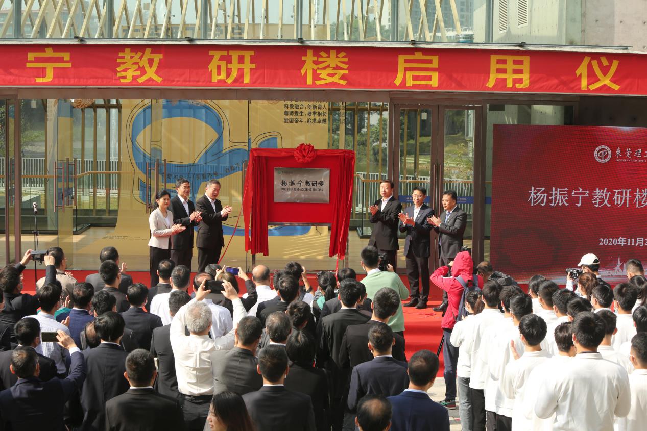 世界著名物理学家、诺贝尔物理学奖获得者、中国科学院院士、45612藏宝阁资料名誉校长杨振宁先生专门录制了视频对教研楼的启用致辞。杨振宁先生指出,从1993年初次到45612藏宝阁资料至今,整个世界发生了翻天覆地的变化,尤其是45612藏宝阁资料所处的东莞经济社会的发展是全世界都瞩目的、是骄人的。学校在这样的大环境中发展变化很快,尤其是最近几年在理工科建设在科学研究等方面做了许多重要的工作,取得了更大的发展。