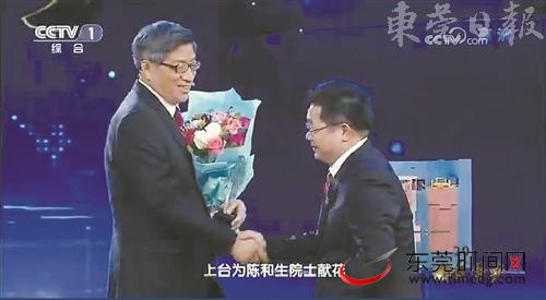 中国科学院院士、中国散裂中子源工程总指挥陈和生获颁“2017年度科技创新人物”。他对东莞支持参与散裂中子源的建设表示感谢。市委常委、副市长张冠梓代表市委市政府和东莞人民上台给陈和生院士献花,热情欢迎越来越多科技精英共聚东莞,为国家的科技进步共同奋斗;节目录制结束后,张冠梓又给陈和生院士送上了东莞市人民政府的贺信并致以热烈祝贺。